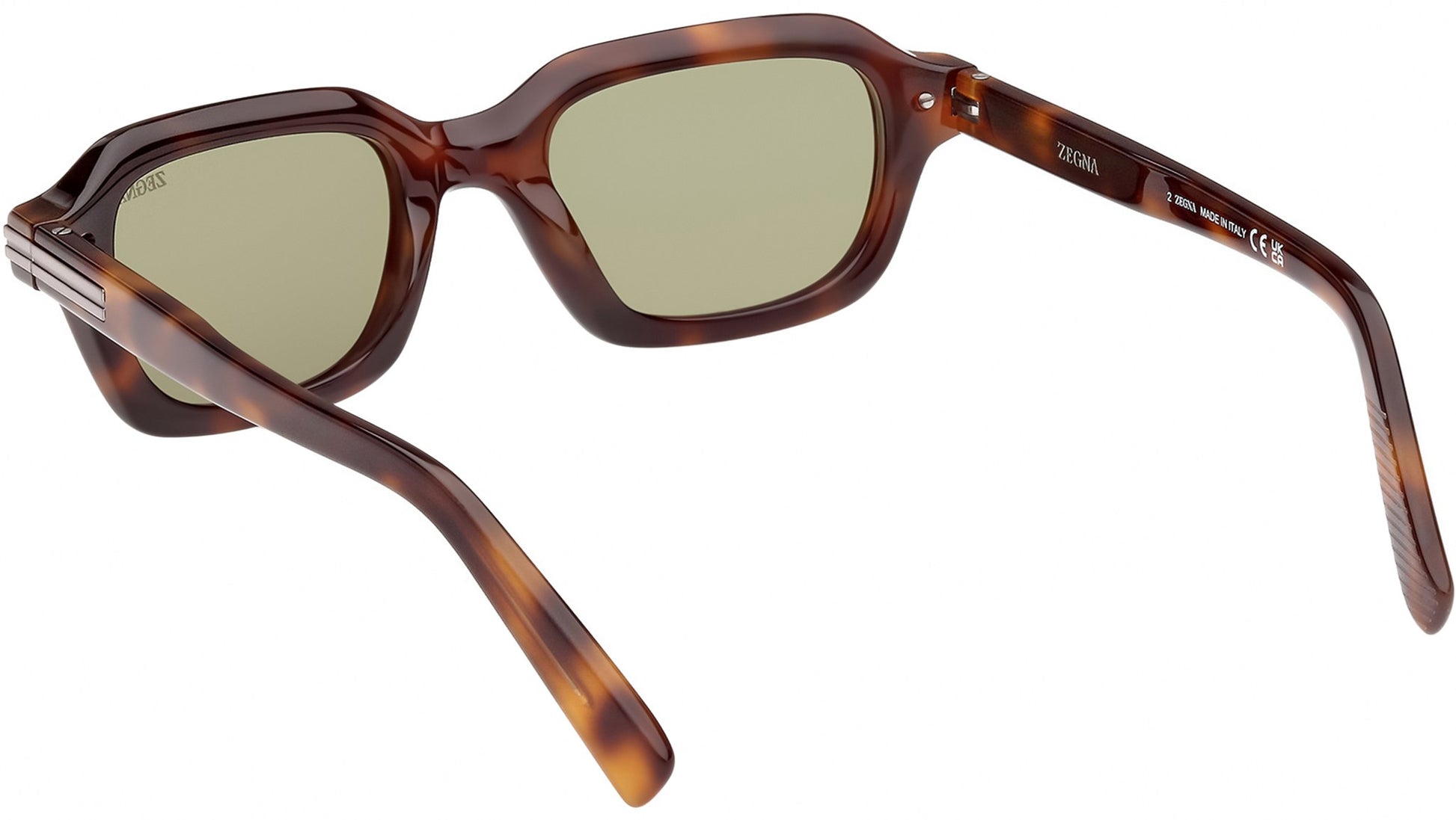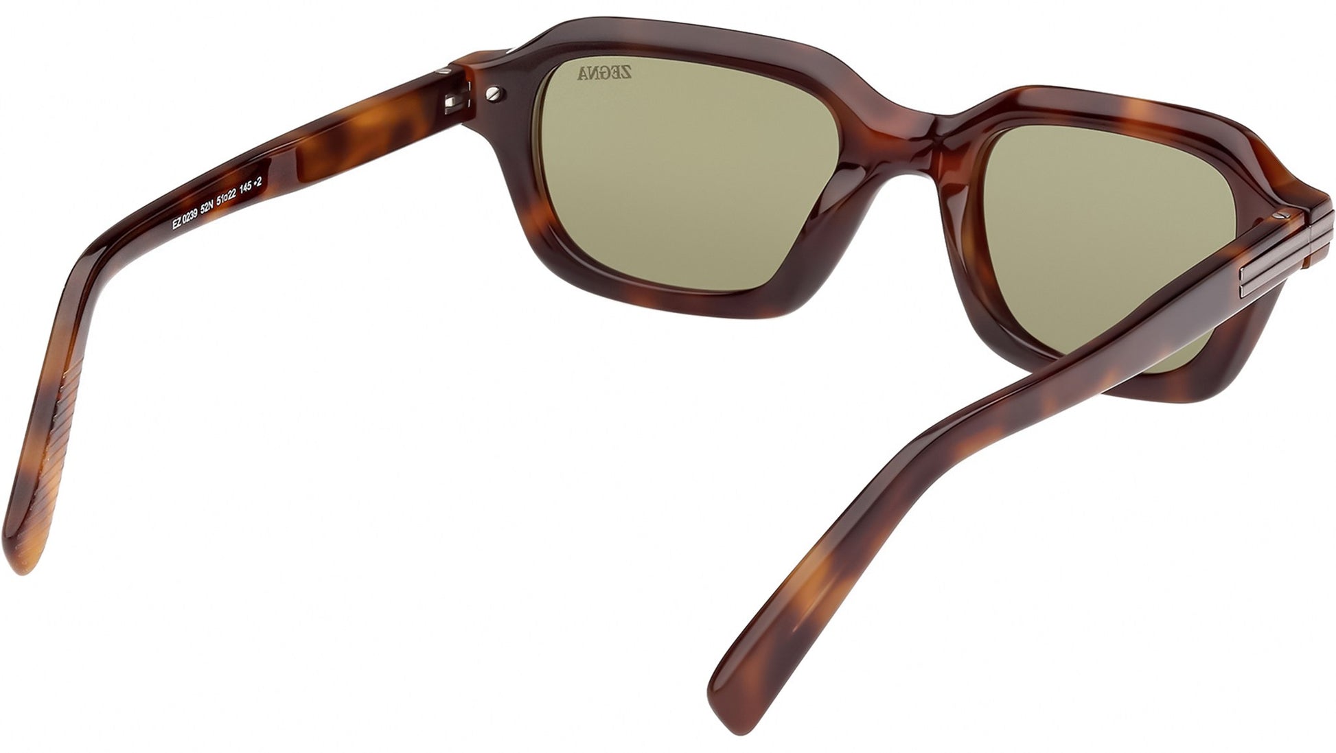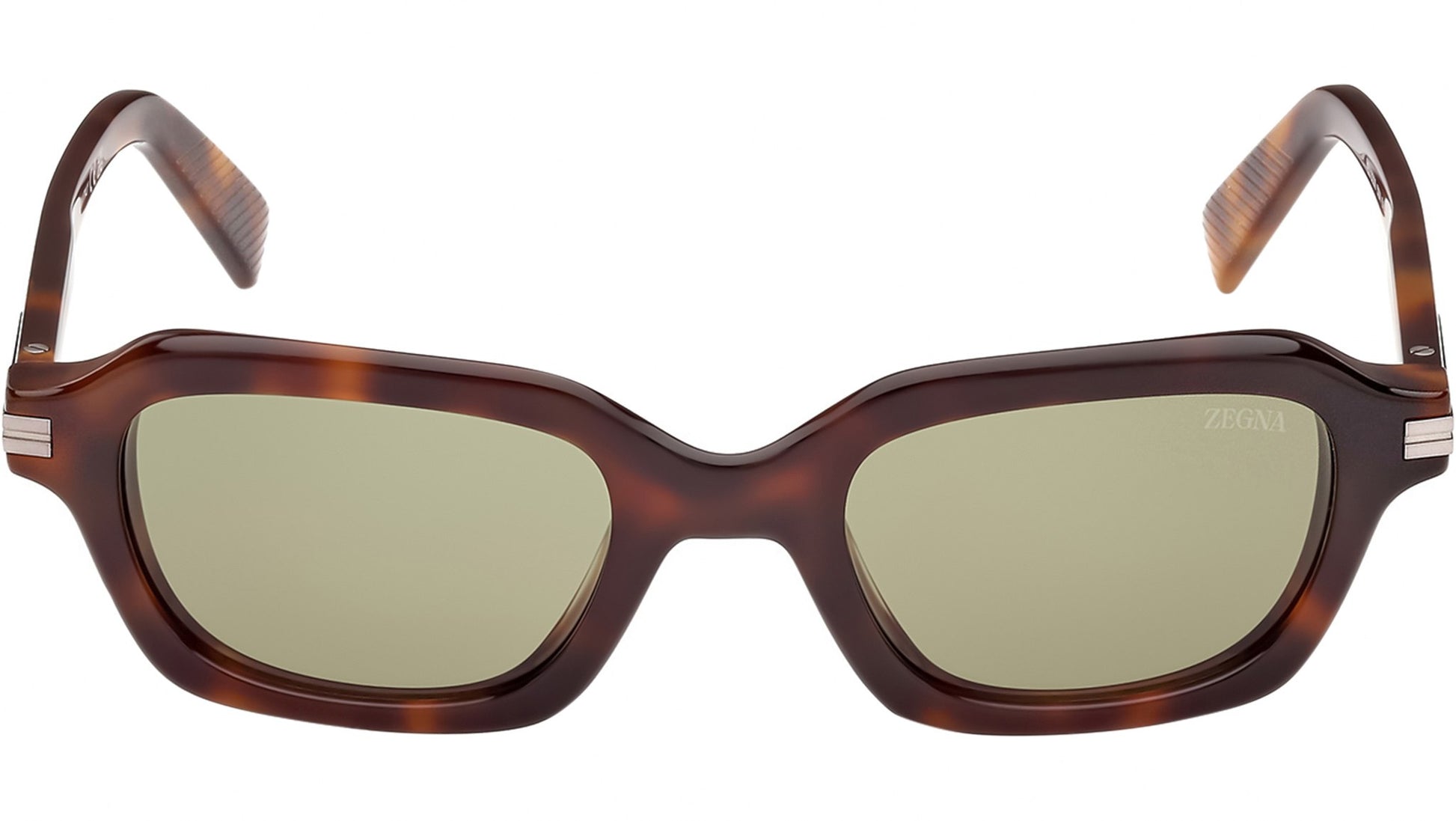 Zegna sunglasses for men model EZ0239 featuring dark havana full-rim acetate frame and green lenses. Brand code: EZ0239. Color code: 52N. Authorised Ermenegildo Zegna Online Reseller. Your glasses will include the original case and accessories and will be covered by a 12-month global warranty.