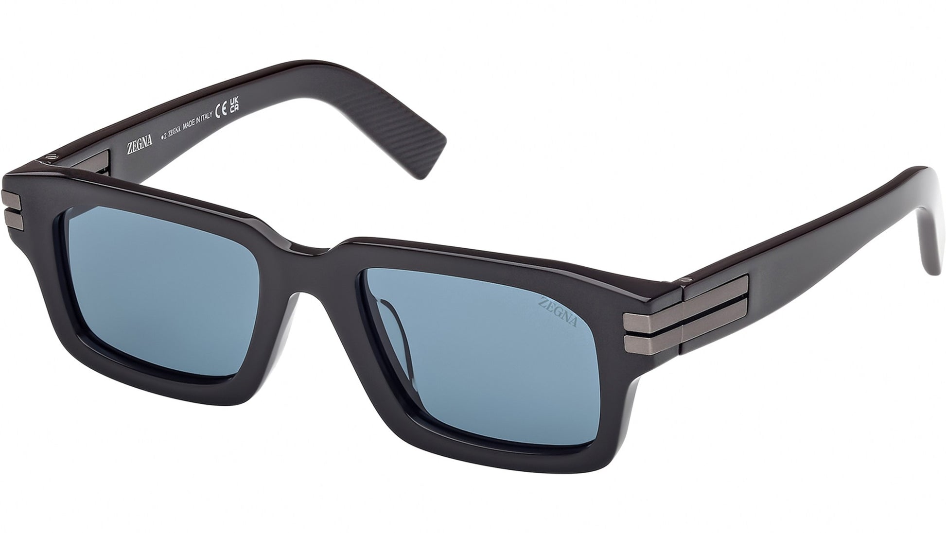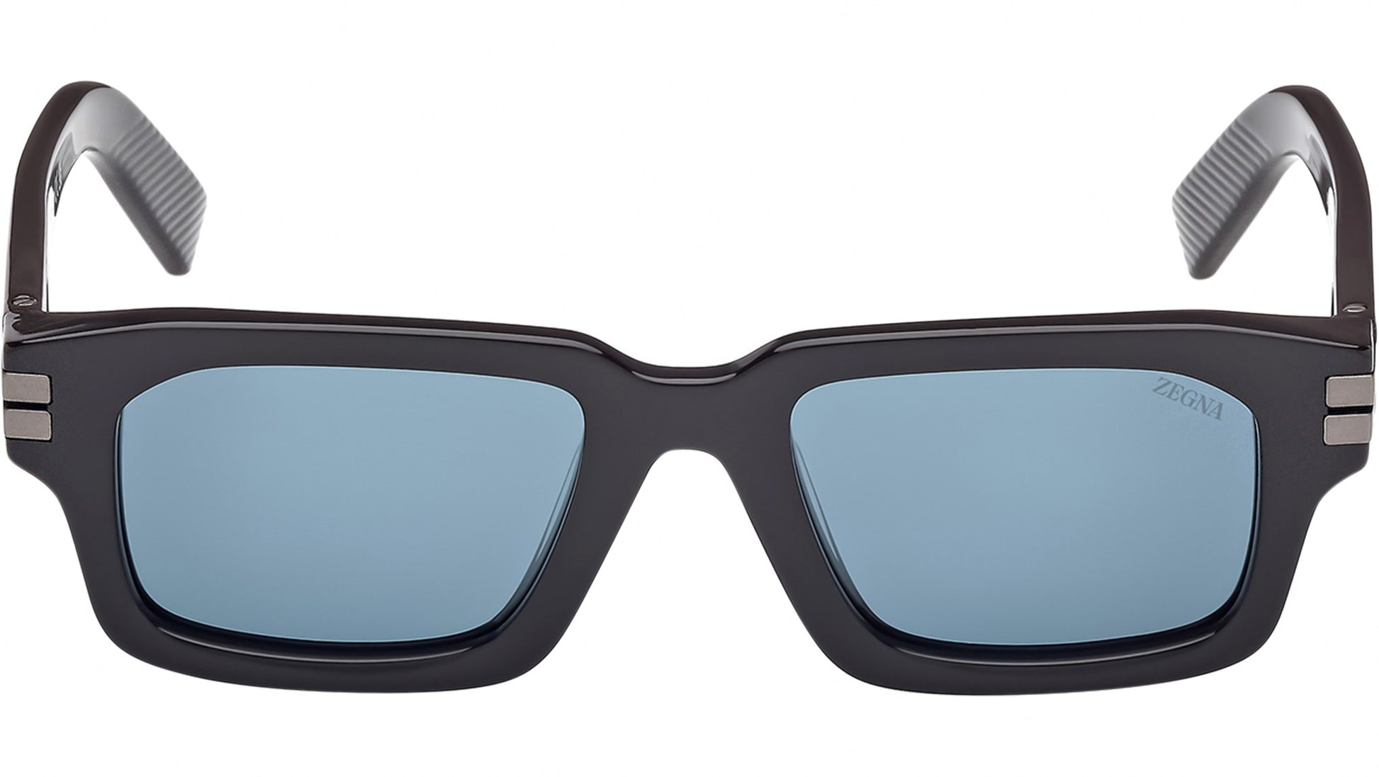 Zegna sunglasses for men model EZ0255 featuring shiny dark brown full-rim acetate frame and blue lenses. Brand code: EZ0255. Color code: 48V. Authorised Ermenegildo Zegna Online Reseller. Your glasses will include the original case and accessories and will be covered by a 12-month global warranty.