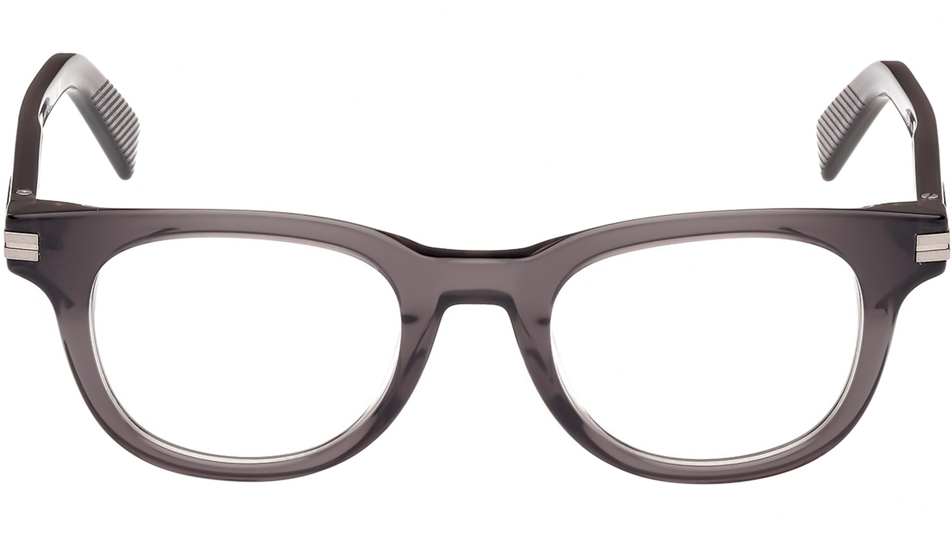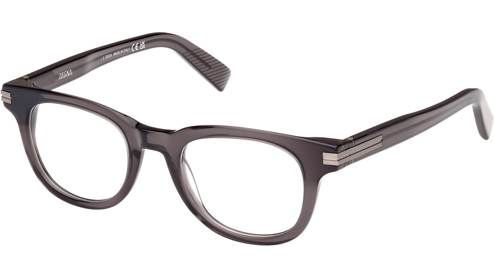 Zegna glasses for men model EZ5279 featuring shiny grey full-rim acetate frame with transparent demo lenses. Brand code: EZ5279. Color code: 020. Authorised Ermenegildo Zegna Eyewear Online Reseller. Your glasses will include the original case and accessories and will be covered by a 12-month global warranty.