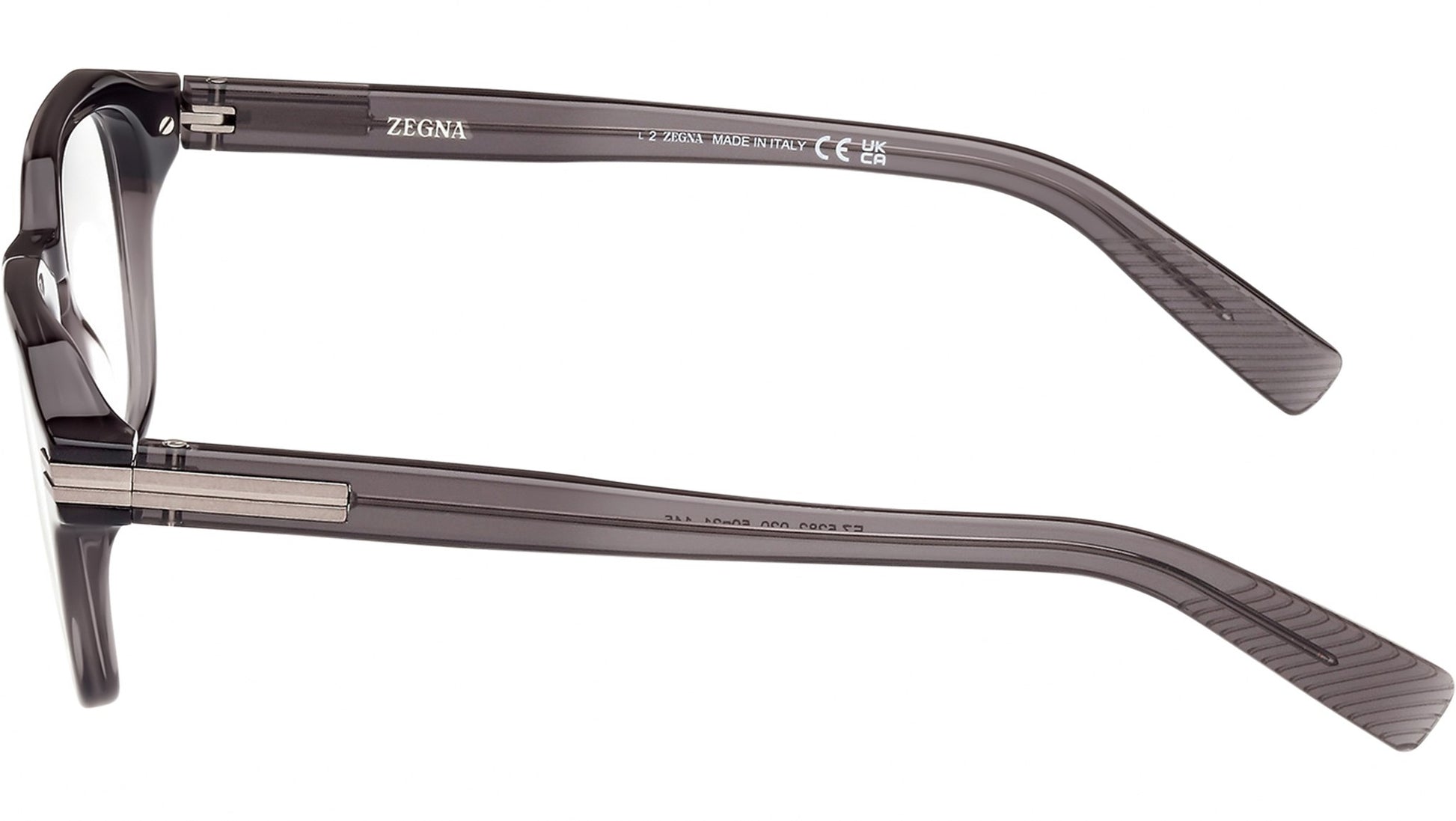 Zegna glasses for men model EZ5282 featuring shiny grey full-rim acetate frame with transparent demo lenses. Brand code: EZ5282. Color code: 020. Authorised Ermenegildo Zegna Eyewear Online Reseller. Your glasses will include the original case and accessories and will be covered by a 12-month global warranty.