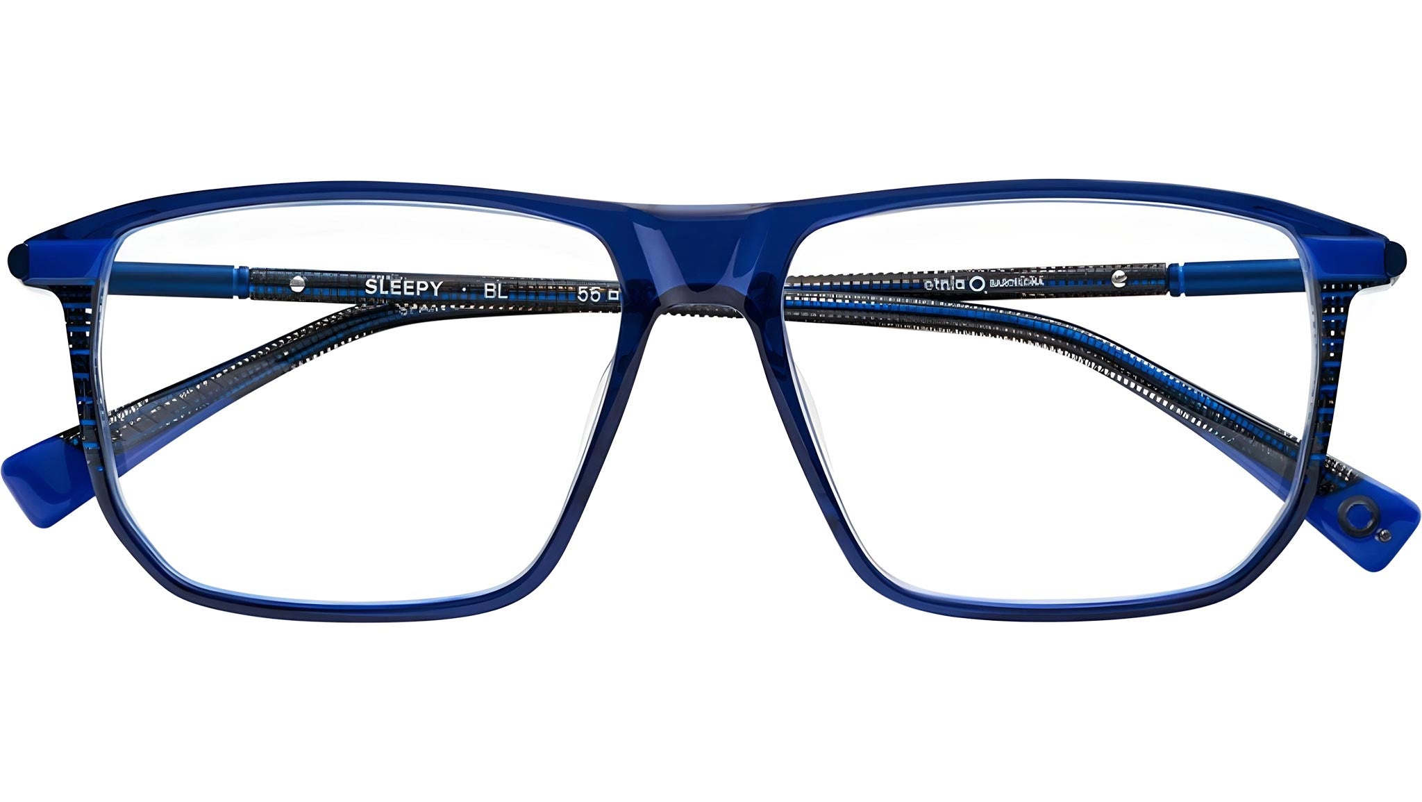 Etnia Barcelona Sleepy square acetate optical frame in blue. Model code: SLEEPY 55O. Color code: BL. Demo lens. Authorised Etnia Barcelona Online Reseller. Your glasses will come including the original case and accessories and will be covered by 12 month global warranty.