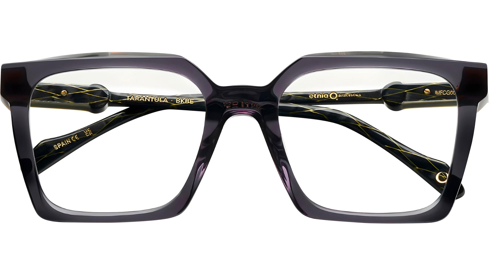 Etnia Barcelona Tarantula square acetate optical frame in black. Model code: TARANTULA 52O. Color code: BKBE. Demo lens. Authorised Etnia Barcelona Online Reseller. Your glasses will come including the original case and accessories and will be covered by 12 month global warranty.