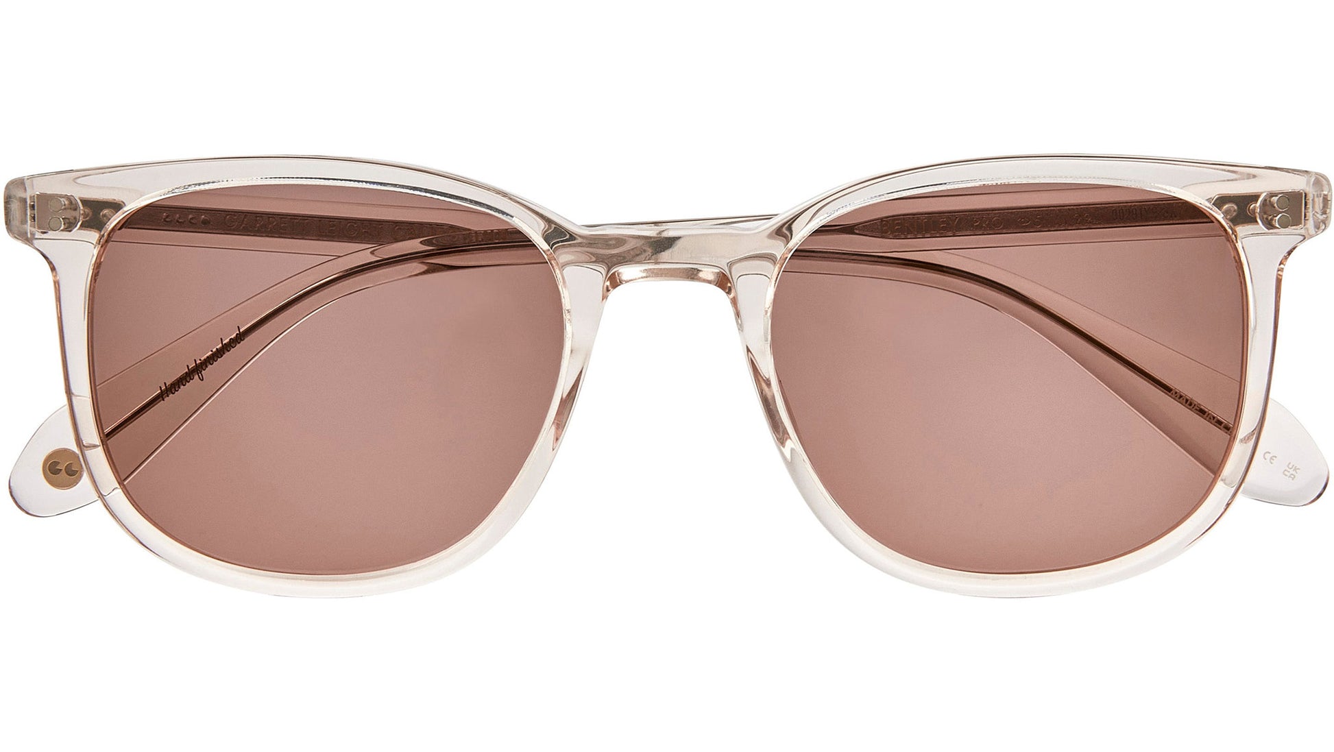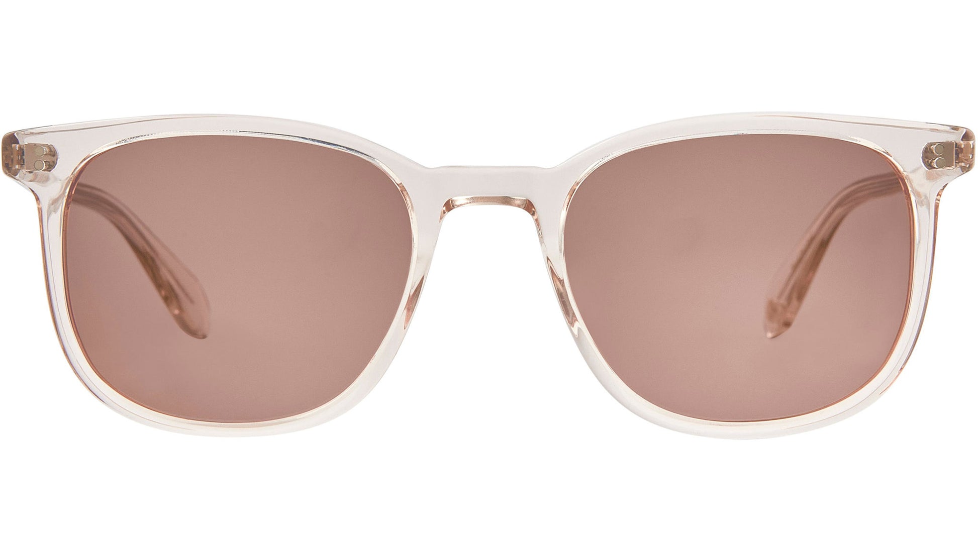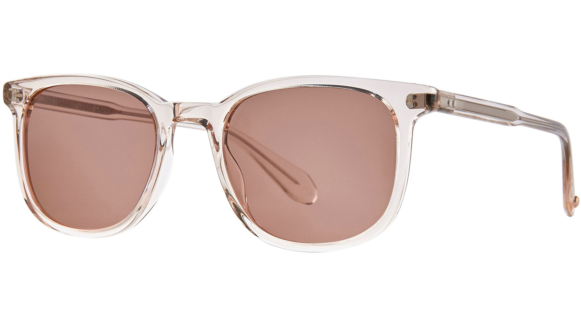Garrett Leight Bentley Sun sunglasses featuring prosecco rectangular acetate frame and bordeaux lenses. The Bentley Sun features a classic, oversized masculine frame designed for wide faces, characterized by the widest nose bridge in the collection. It is equipped with a saddle nose bridge for enhanced comfort and provides 100% UV protection. Technical specifications include hand-finished optical quality CR-39 lenses, cured cellulose acetate with a classic core wire, a 6-base lens with a backside anti-reflective coating, and robust 5-barrel hinges fitted with real rivets and external pins. Each pair comes with a soft case and a cleaning cloth, ensuring both style and practicality. Brand line: GLCO. Style code: 2036. Color code: PRO/BOR. Authorized Garrett Leight online reseller. Your glasses will include the original case and accessories and are covered by a 12-month global warranty.
