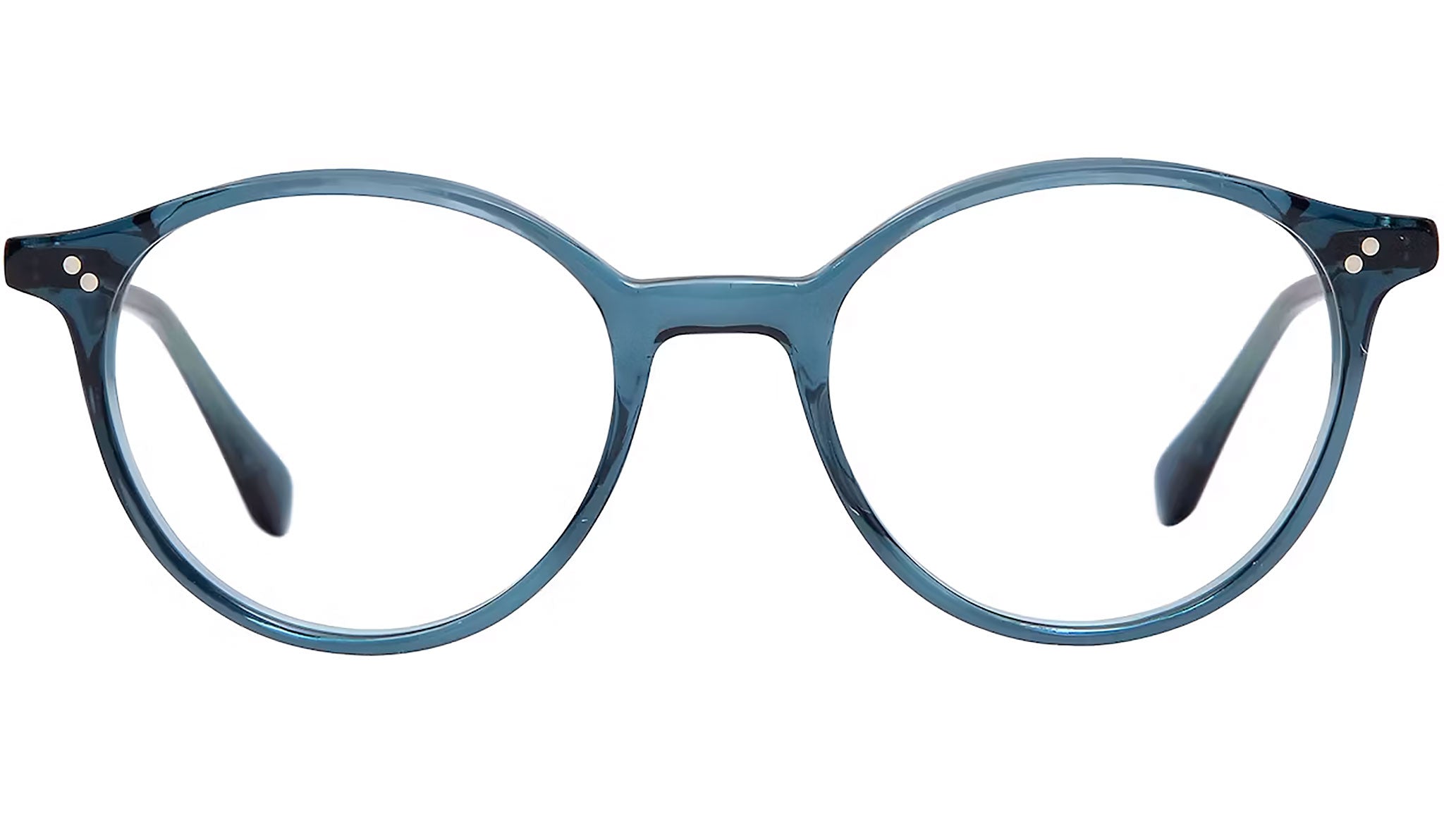 Gigi Studios Eyewar optical frame model 64900 Brooks color code 3 in blue. A classic panthos full rim acetate glasses with transparent demo lens. Gigi Studios Eyewear ensures the highest quality through their meticulous selection of materials, partnering with top suppliers from Italy, Germany, and Japan. These collaborations guarantee a blend of sophistication, sustainability, and superior craftsmanship in every piece.