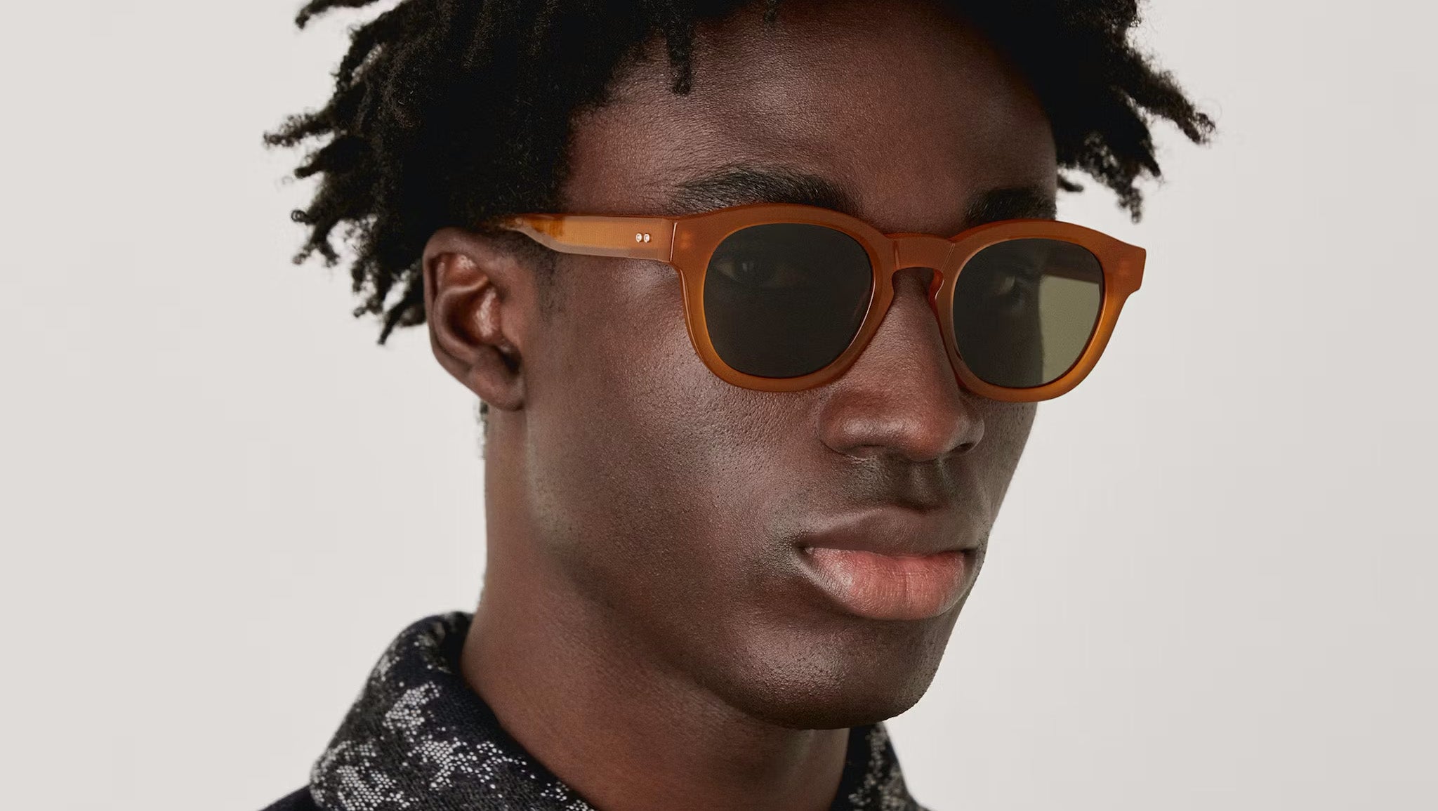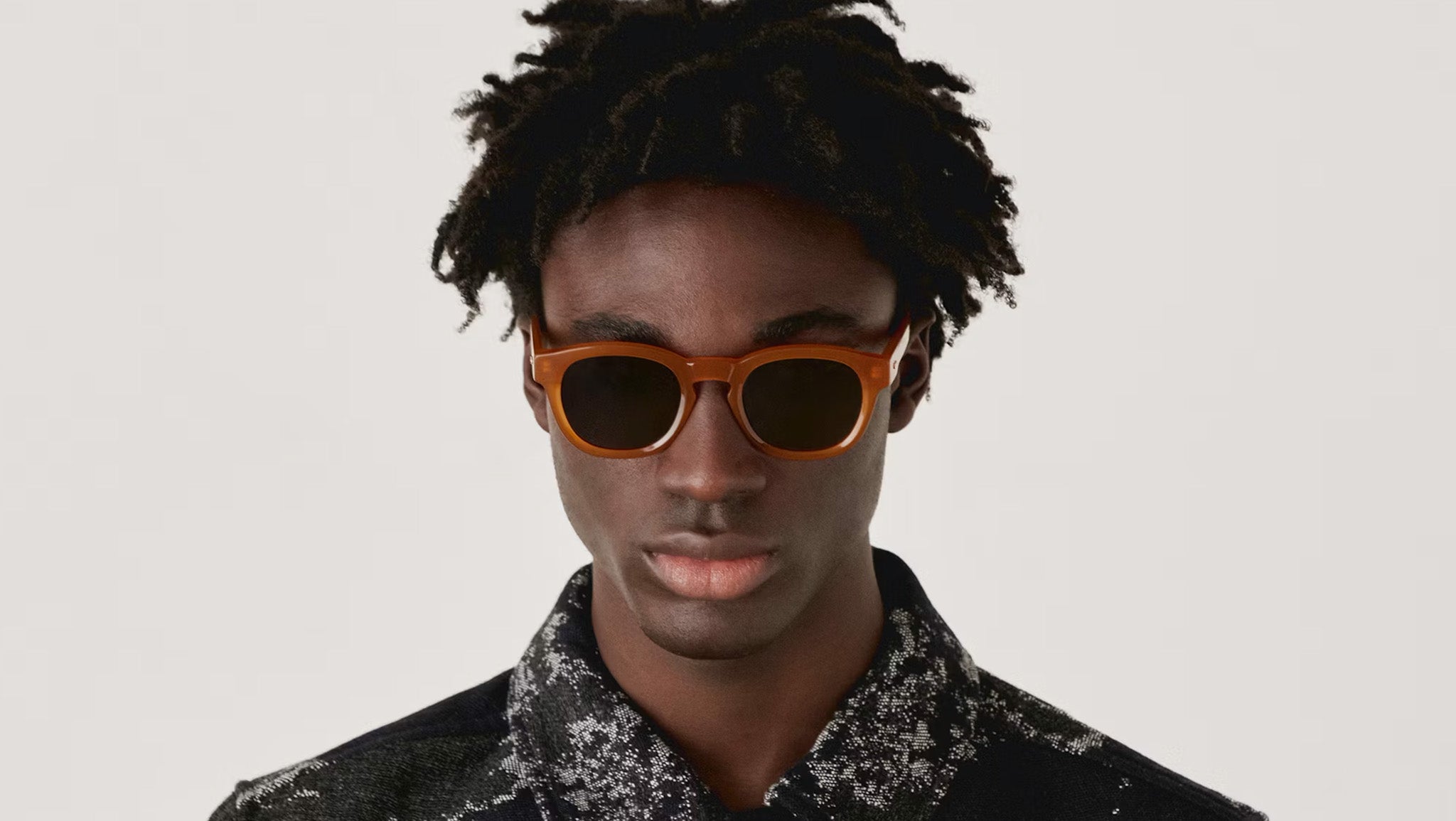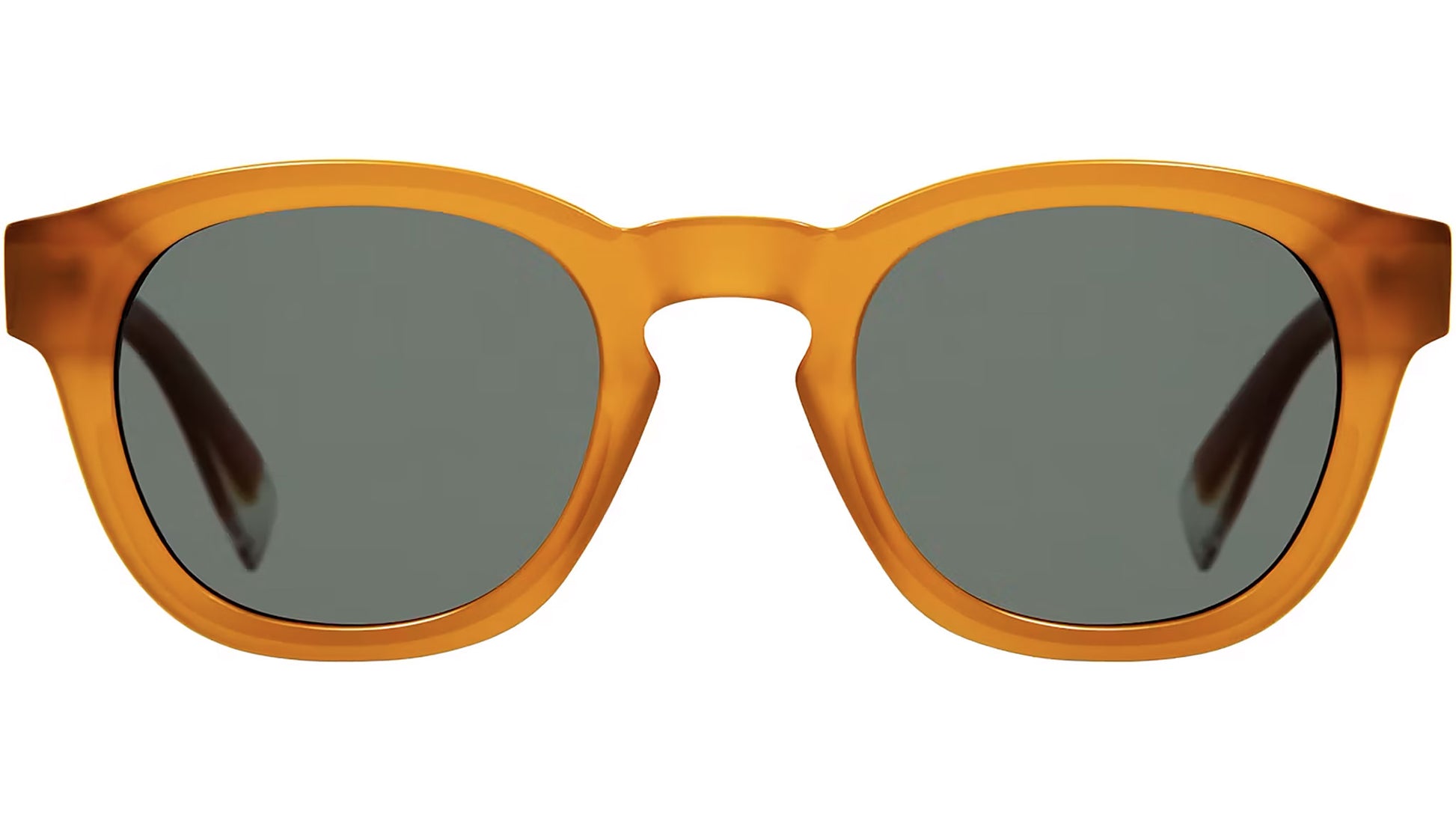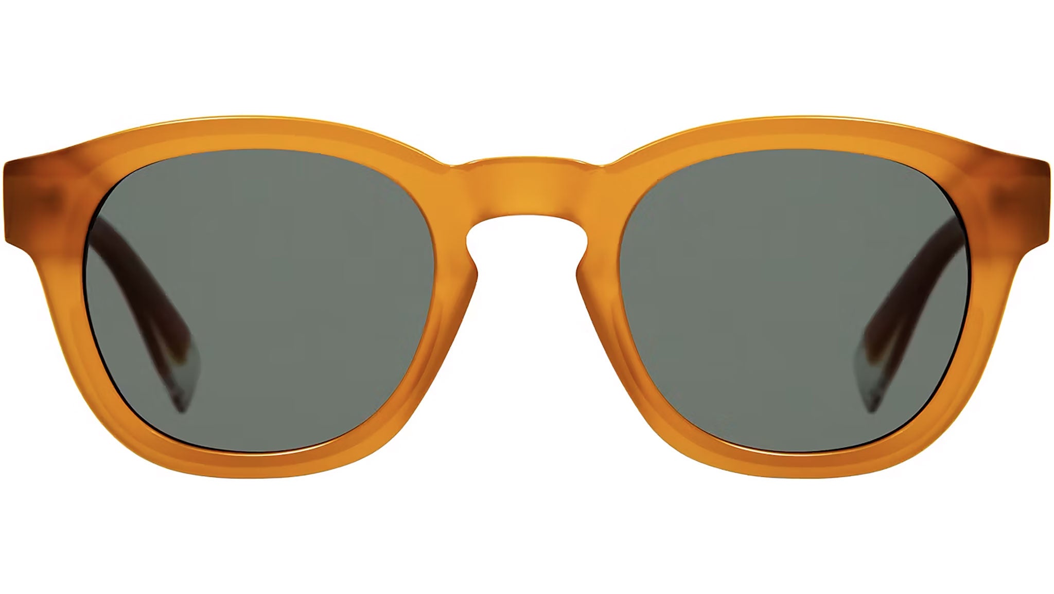 Gigi Studios Eyewar sunglasses model 6786 Galilei color code 9 in honey. A classic round full rim acetate glasses with green lenses. The brand ensures the highest quality through their meticulous selection of materials, partnering with top suppliers from Italy, Germany, and Japan. Gigi Studios provides an exceptional visual experience with CR-39 lenses that are comfortable and secure, effectively absorbing UVA and UVB rays.