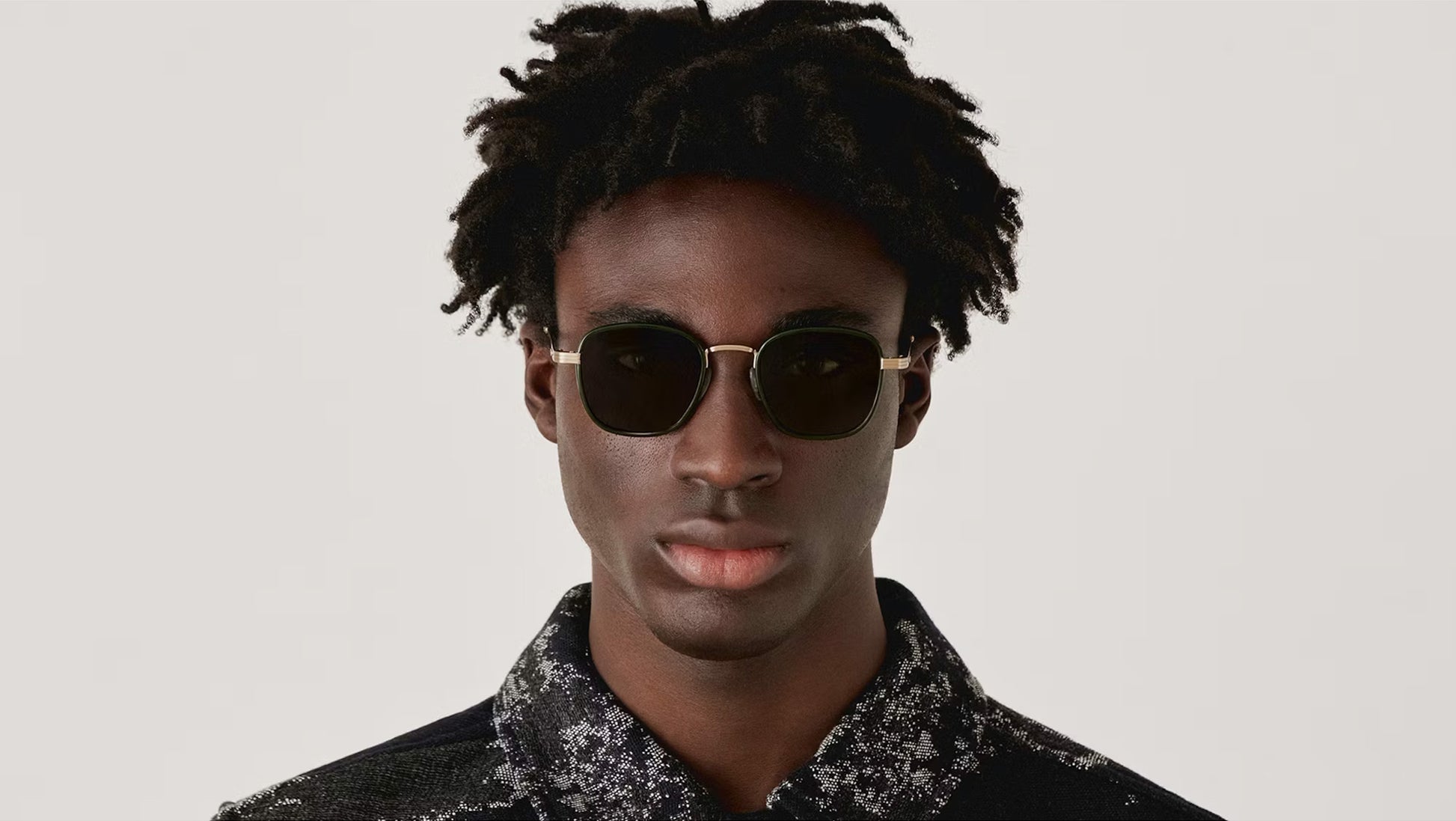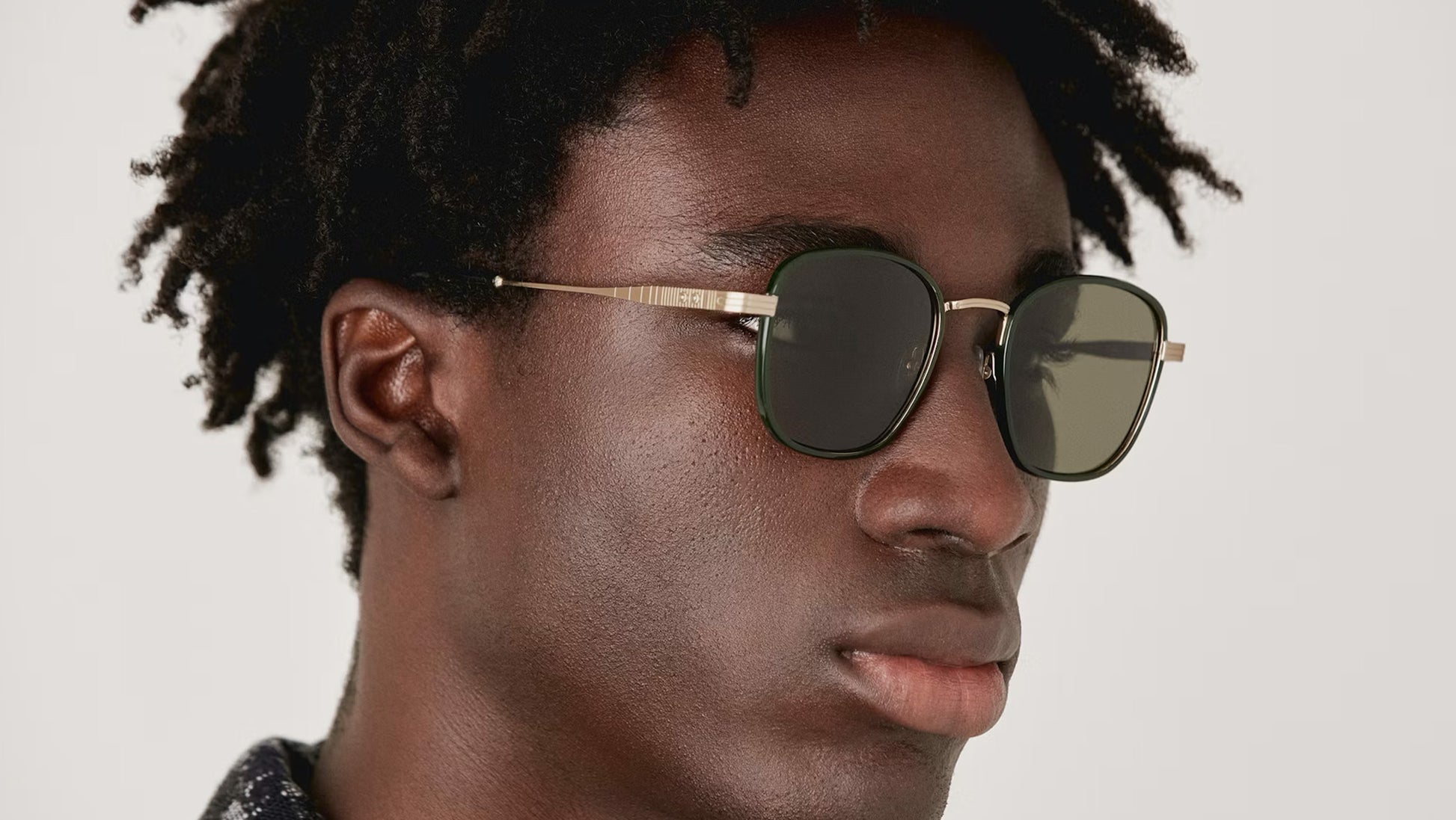 Gigi Studios Eyewar sunglasses model 6788 Hoffman color code 1 in black. A classic square full rim acetate-titanium glasses with green lenses. The brand ensures the highest quality through their meticulous selection of materials, partnering with top suppliers from Italy, Germany, and Japan. Gigi Studios provides an exceptional visual experience with CR-39 lenses that are comfortable and secure, effectively absorbing UVA and UVB rays.