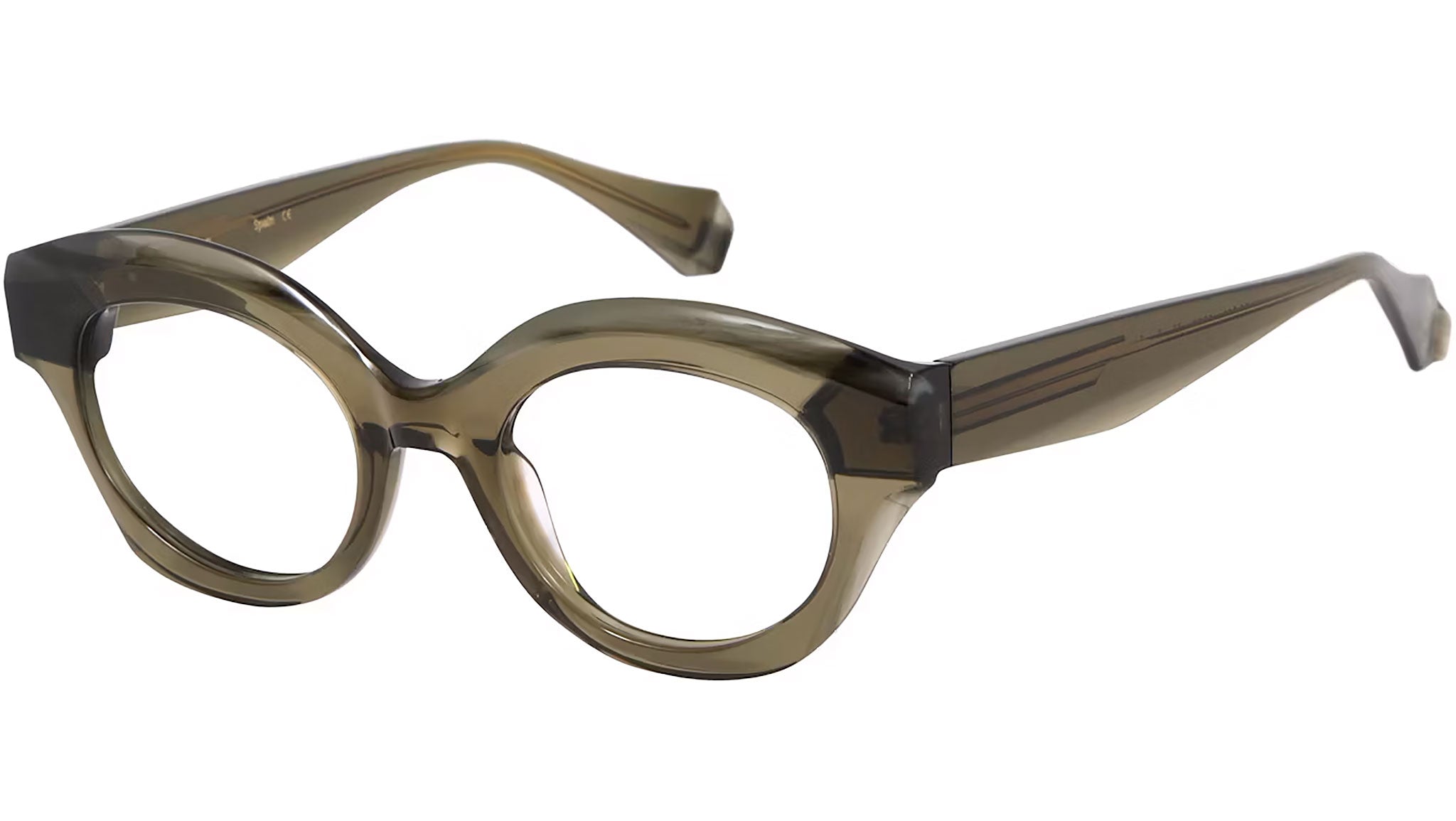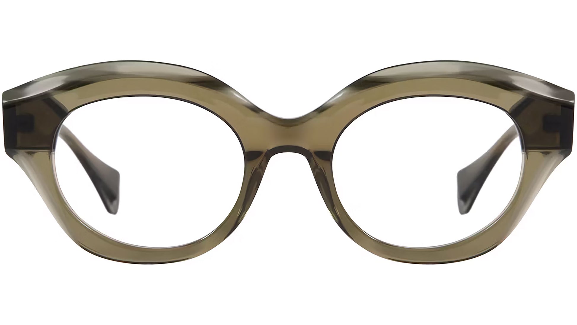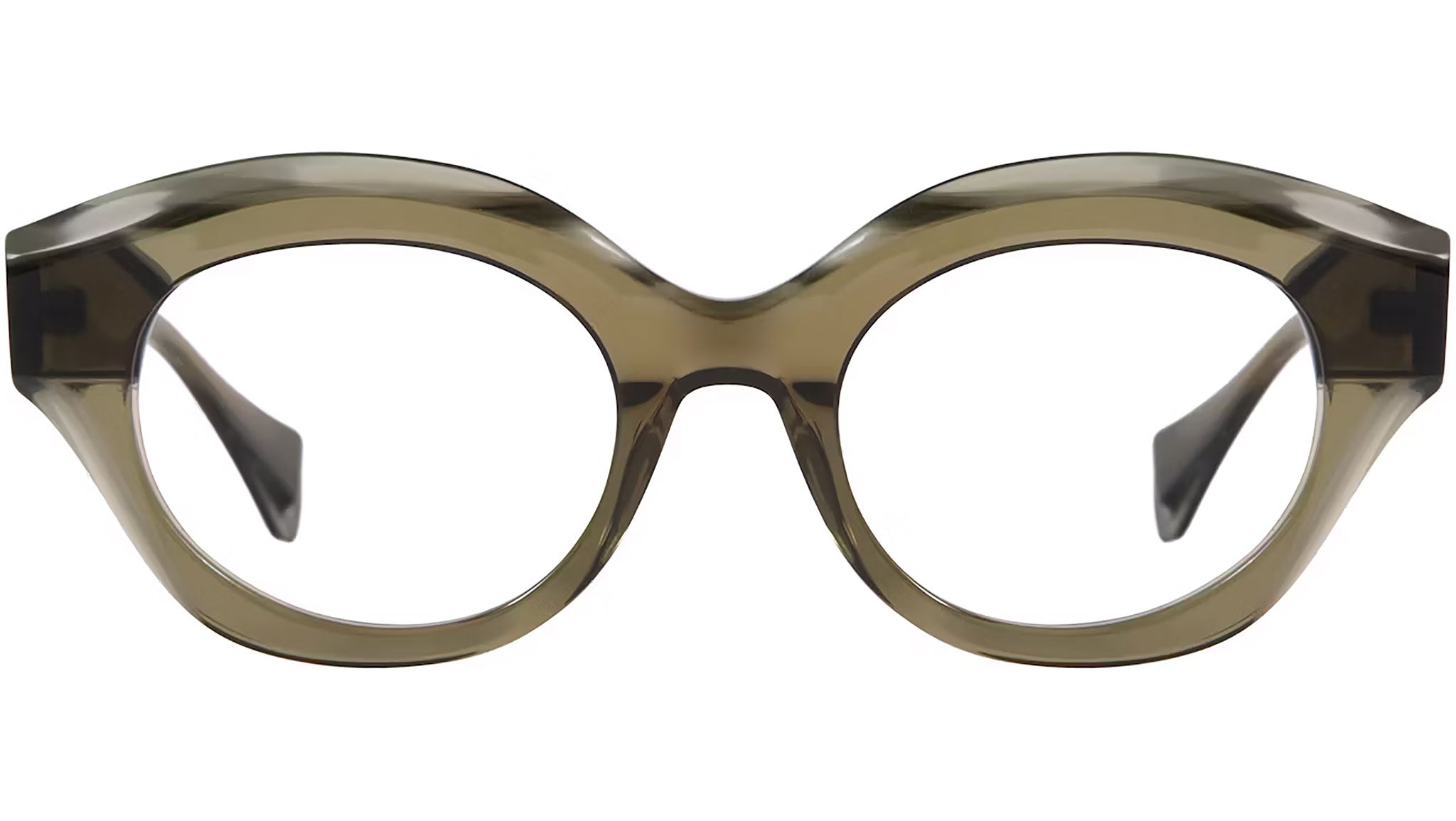 Gigi Studios Eyewar optical frame model 6729 Margaret color code 7 in translucent green. A classic geometric full rim acetate glasses with transparent demo lens. Gigi Studios Eyewear ensures the highest quality through their meticulous selection of materials, partnering with top suppliers from Italy, Germany, and Japan. These collaborations guarantee a blend of sophistication, sustainability, and superior craftsmanship in every piece.