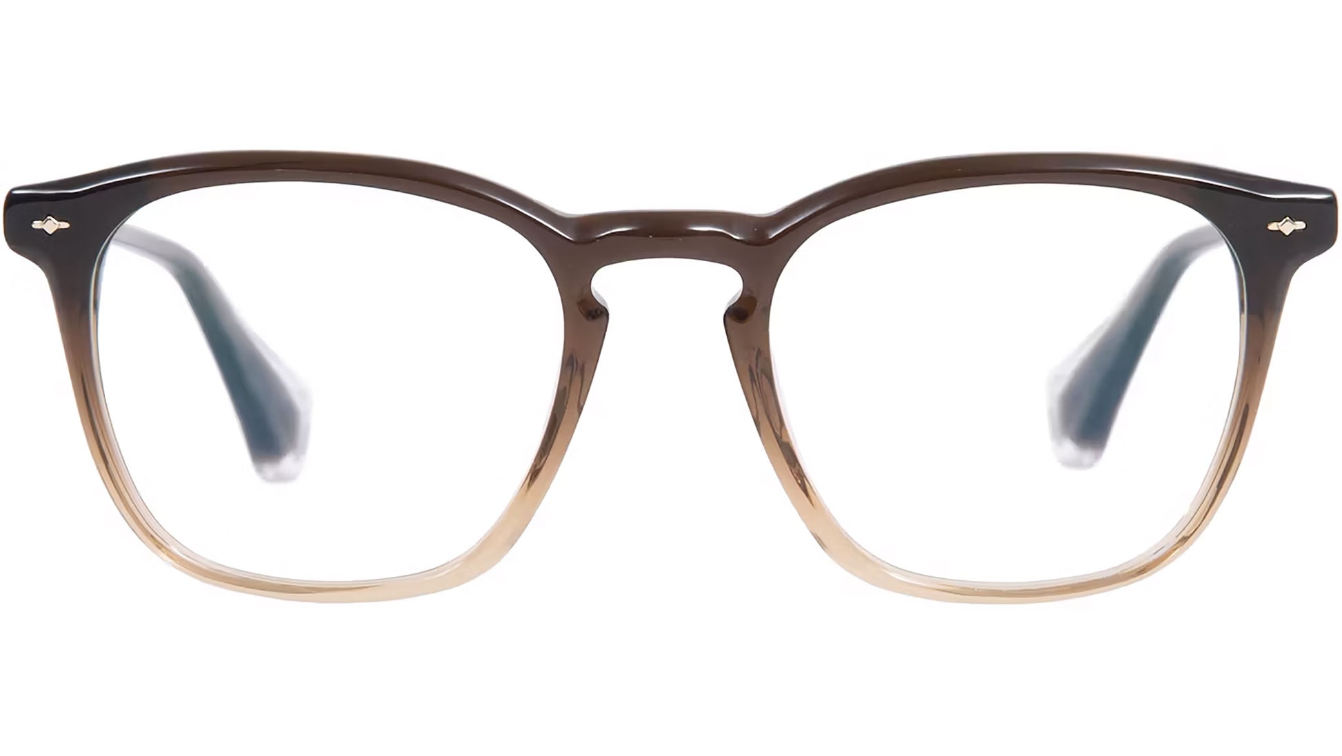 Gigi Studios Eyewar optical frame model 6674 McCartney color code 9 in brown gradient. A classic square full rim acetate glasses with transparent demo lens. Gigi Studios Eyewear ensures the highest quality through their meticulous selection of materials, partnering with top suppliers from Italy, Germany, and Japan. These collaborations guarantee a blend of sophistication, sustainability, and superior craftsmanship in every piece.