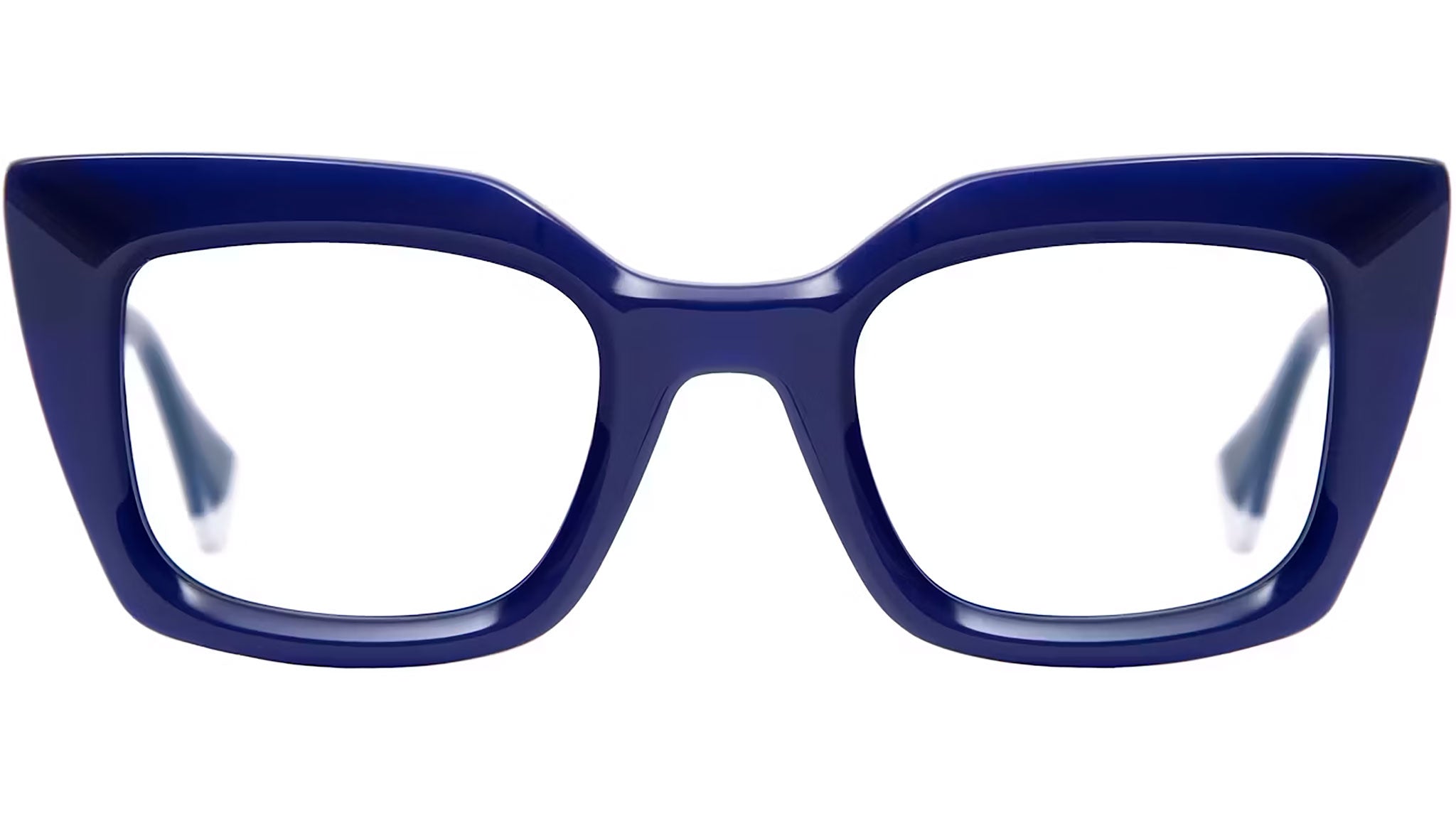 Gigi Studios Eyewar optical frame model 64990 Mia color code 3 in blue. A classic cat eye full rim acetate glasses with transparent demo lens. Gigi Studios Eyewear ensures the highest quality through their meticulous selection of materials, partnering with top suppliers from Italy, Germany, and Japan. These collaborations guarantee a blend of sophistication, sustainability, and superior craftsmanship in every piece.
