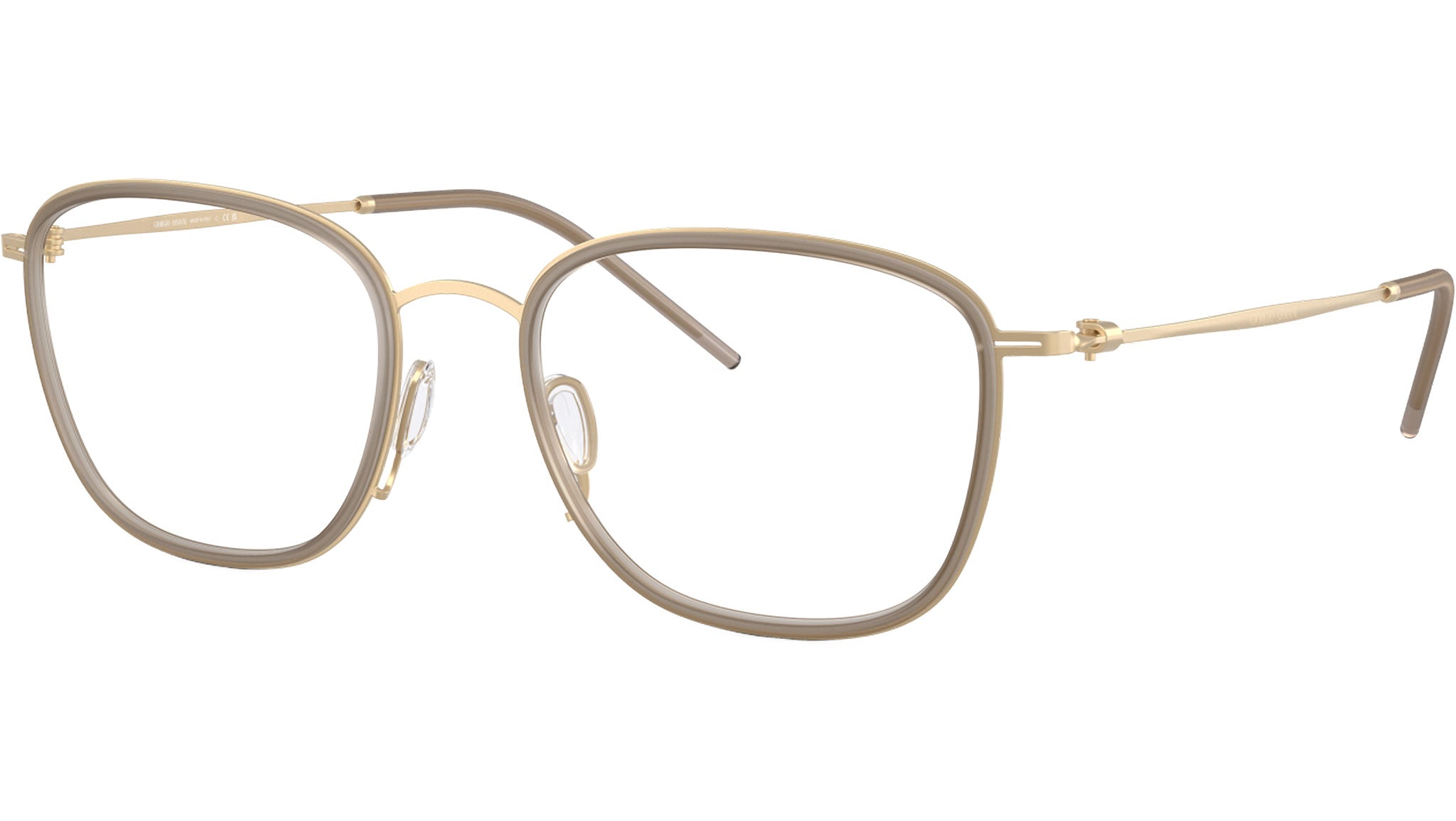 Giorgio Armani AR 5154 3002 glasses, featuring matte pale gold d-frame metal frame and demo lenses. Adjustable nosepads. Brand line: Visionary Luxury. Style code: 0AR5154. Color code: 3002. Authorized Giorgio Armani online reseller. Your glasses will include the original case and accessories and are covered by a 12-month global warranty.