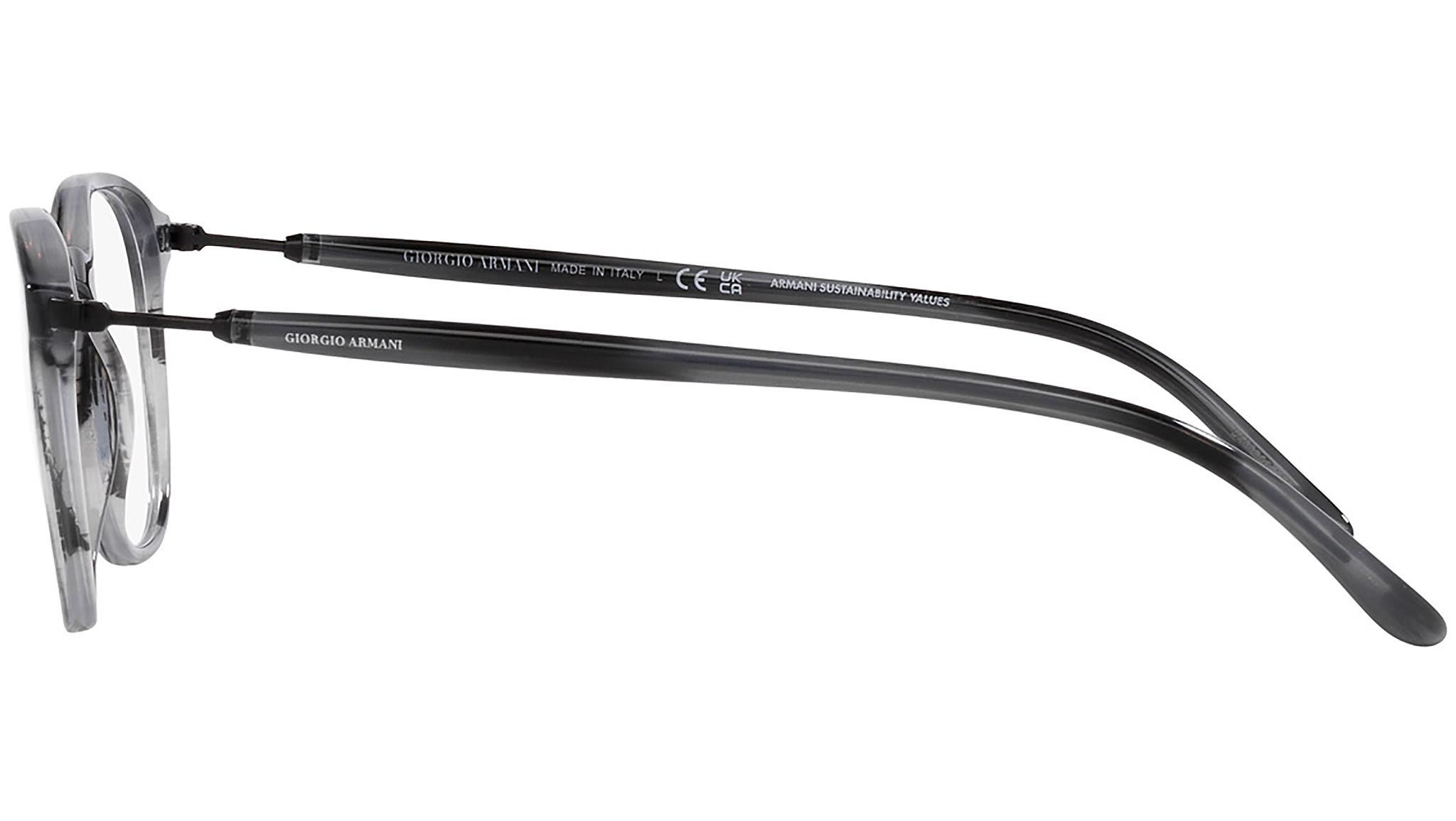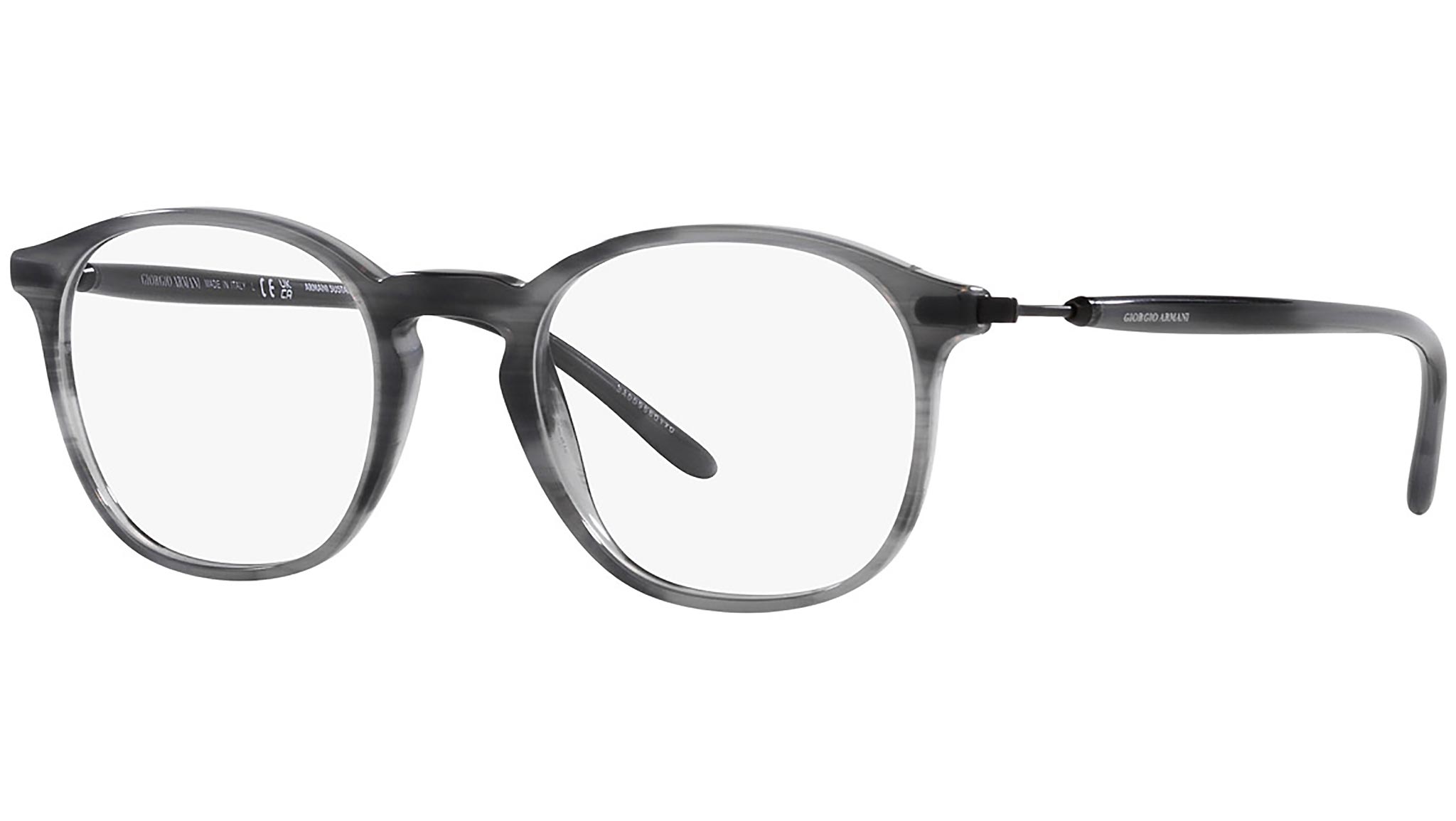 Giorgio Armani eyeglasses for men model AR 7213 featuring striped grey full rim acetate frame and base 4 curve demo lens. High Bridge Fit. Frame line: Daniel Lee Runway Capsule. Brand code: AR7213. Color code: 5877. Authorised Giorgio Armani Online Reseller. Your glasses will come including the original case and accessories and will be covered by 12 month global warranty.
