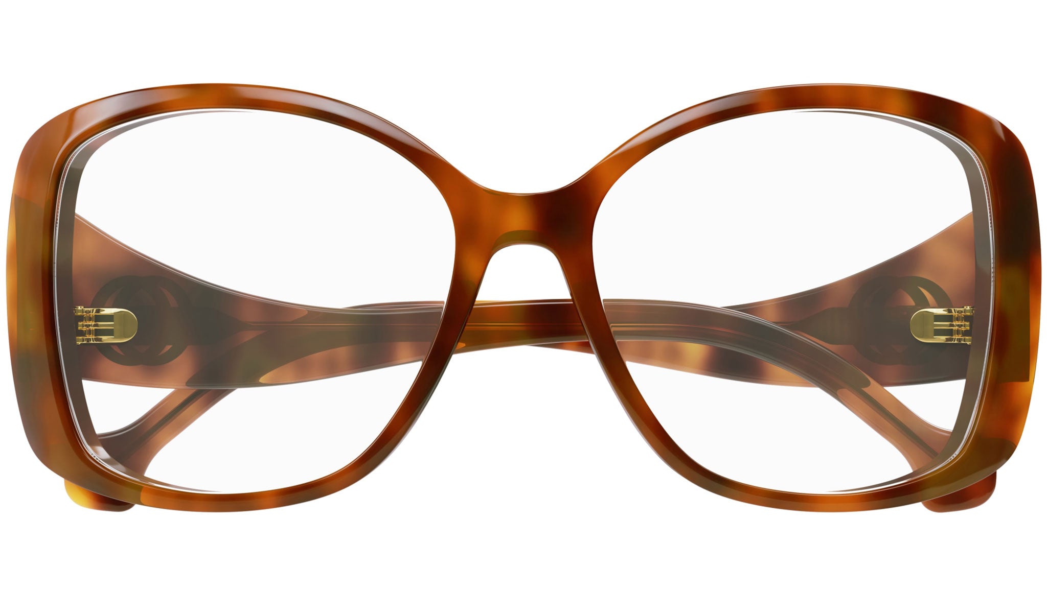 Gucci optical collection model GG1236OA 002 featuring shiny blond vintage havana frame and havana temple.