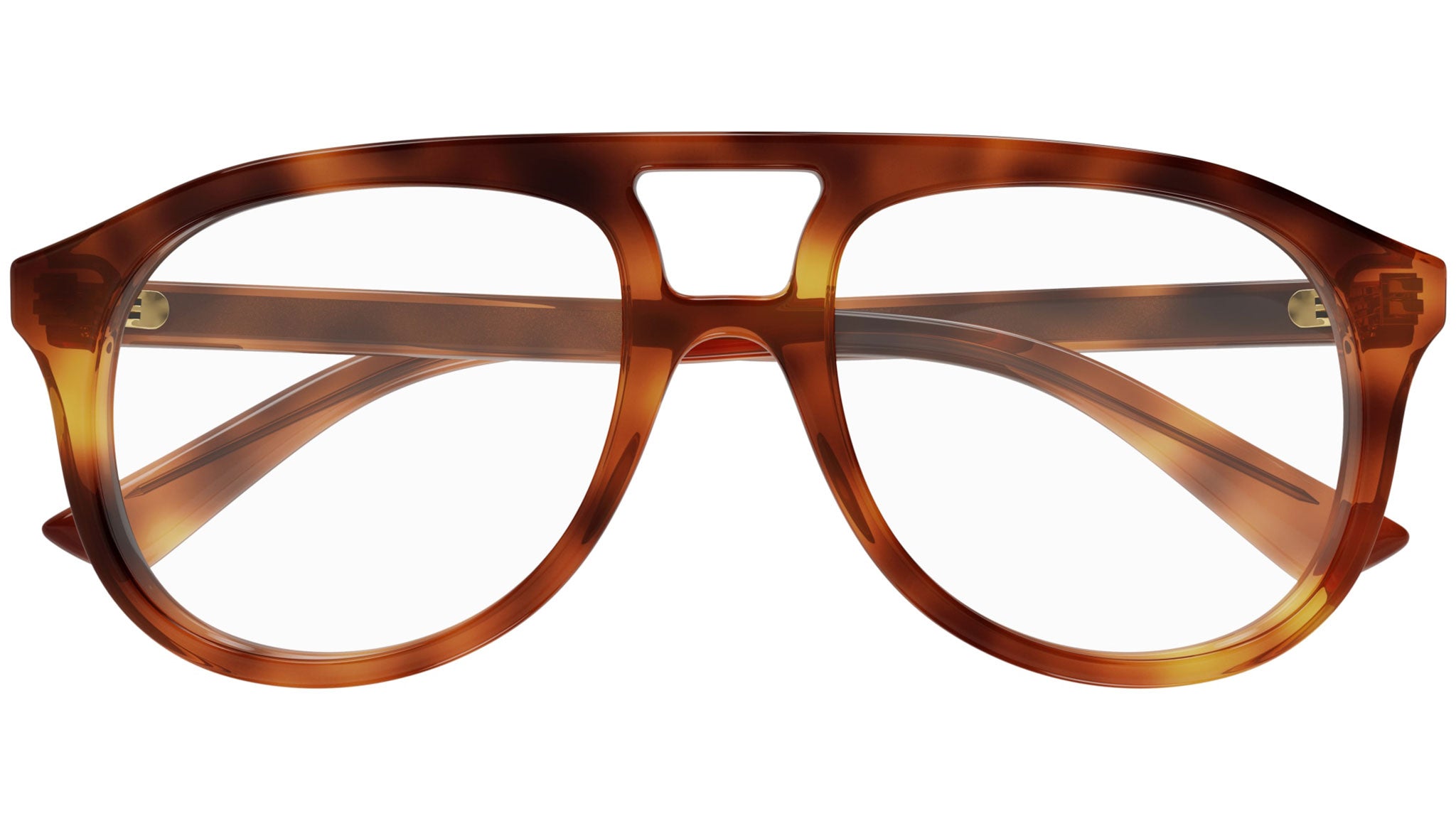 Gucci optical collection model GG1320O 002 featuring shiny blonde havana frame and havana temple.