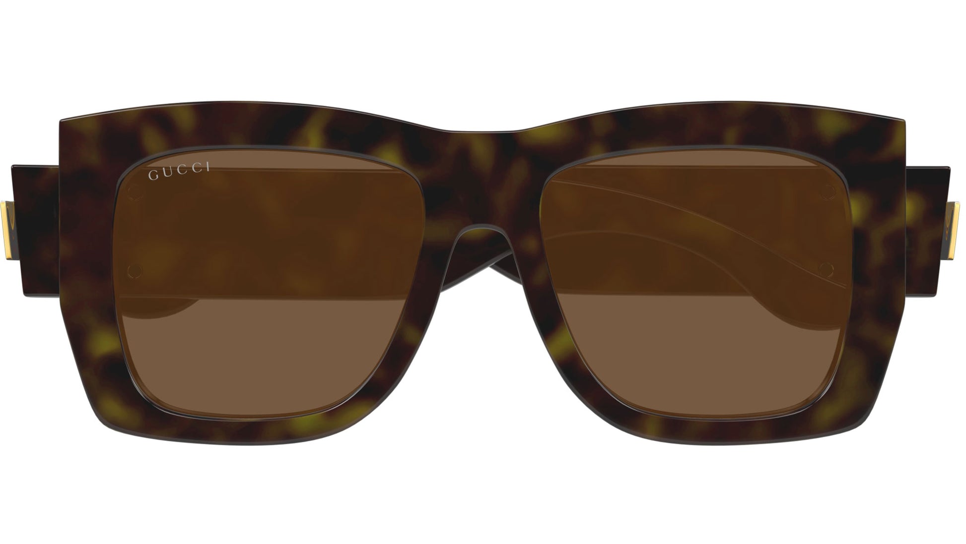 Gucci sunglasses model GG1688S GG Logo line rectangle injection frame color code 002 shiny dark havana with havana temple and solid brown lenses. Authorized Gucci online reseller. Your glasses will come with the original case and accessories and will be covered by a 12-month global warranty.