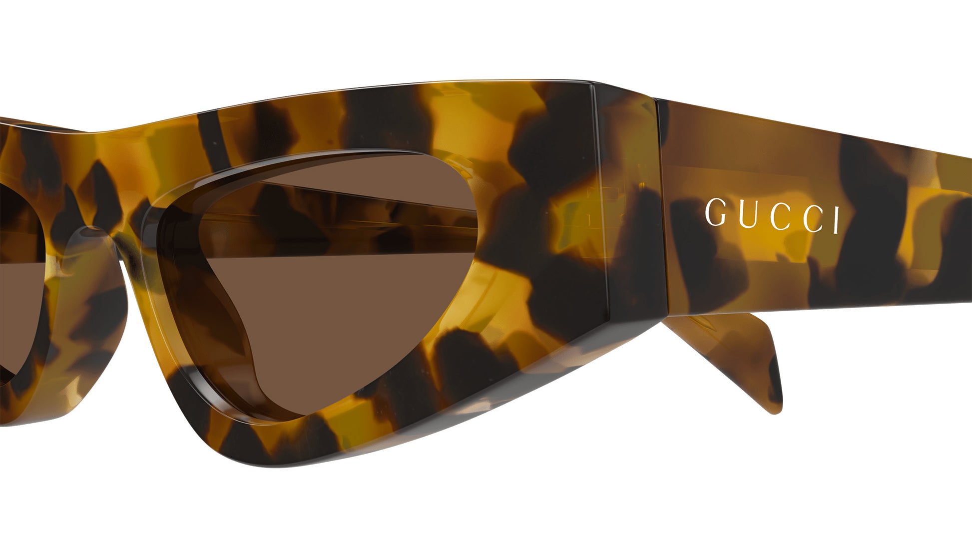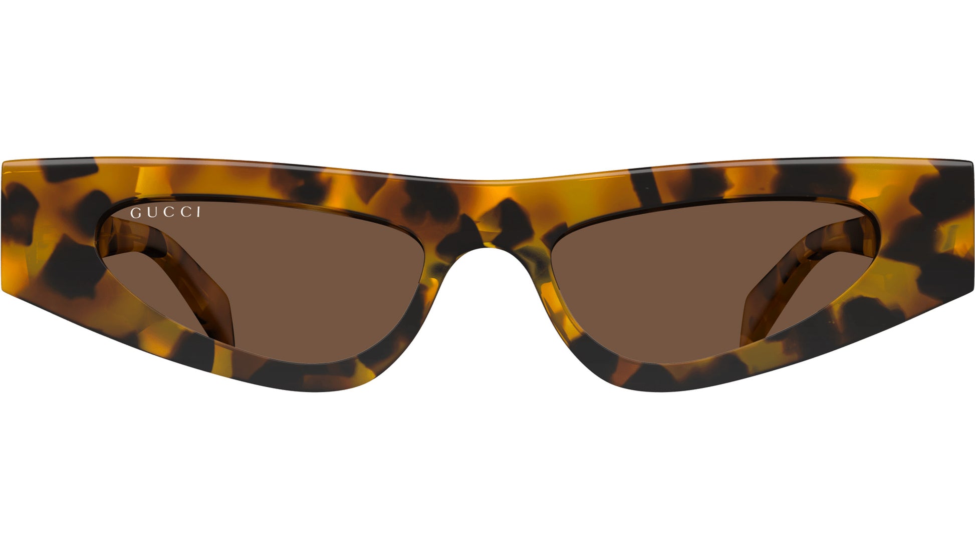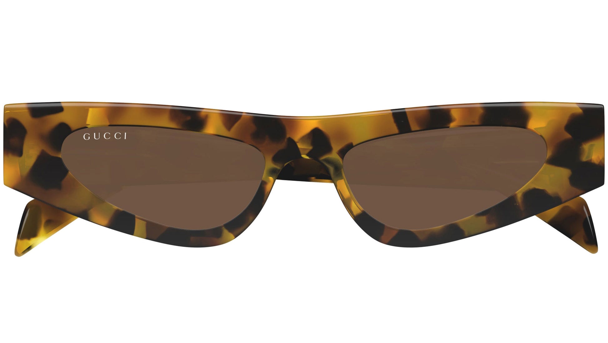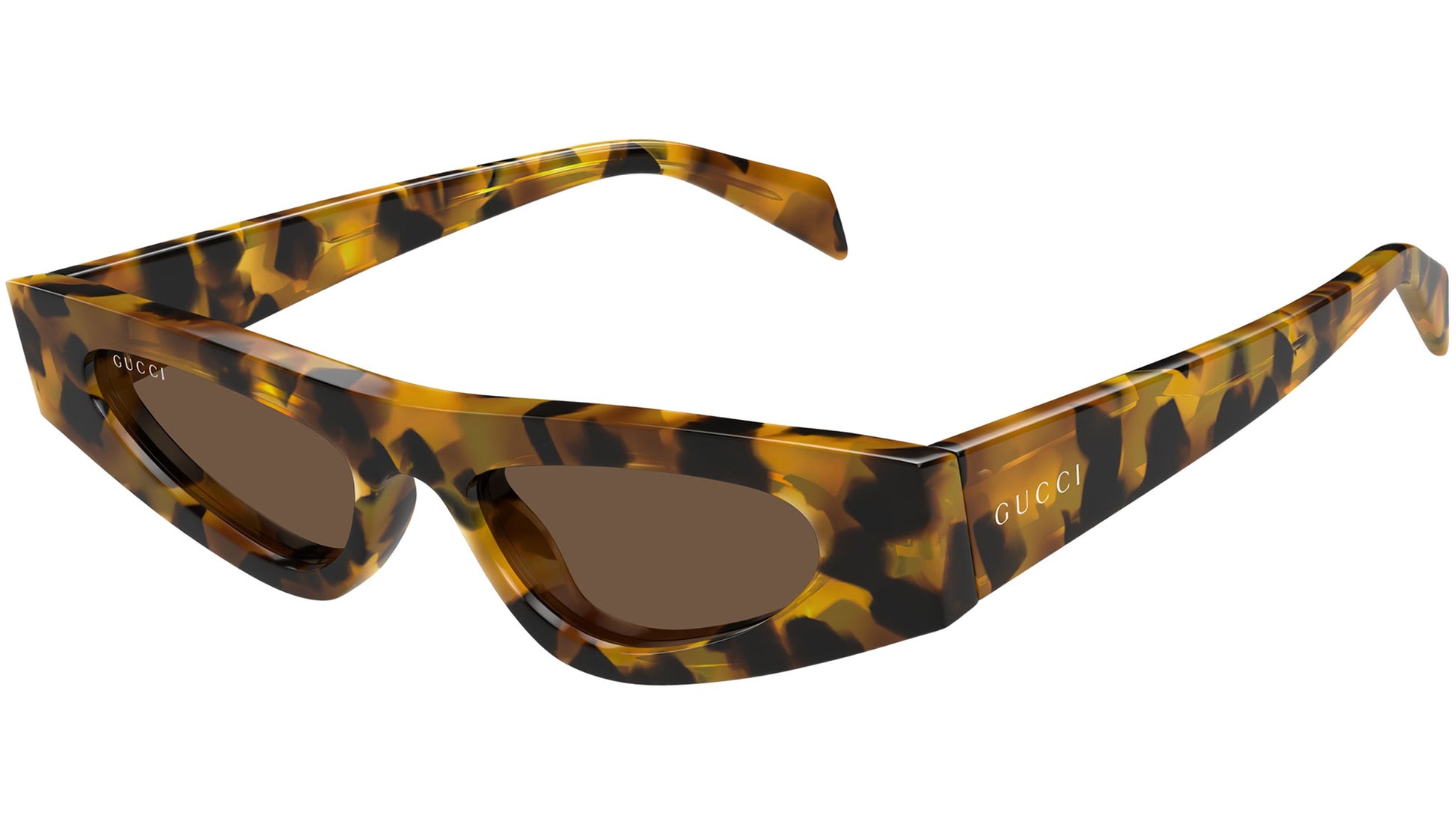 Gucci sunglasses model GG1779S Fashion line cat eye recycled acetate frame color code 004 shiny spotted havana with havana temple and solid brown lenses. Authorized Gucci online reseller. Your glasses will come with the original case and accessories and will be covered by a 12-month global warranty.
