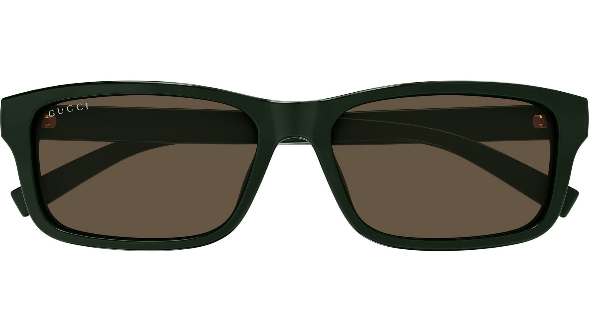 Gucci GG1986SA 003 sunglasses for men, featuring shiny green rectangular injection frame and solid brown bio nylon lenses. Brand line: Sign. Style code: GG1986SA. Color code: 003. Made in Italy. Authorized Gucci online reseller. Your glasses will include the original case and accessories and are covered by a 12-month global warranty.