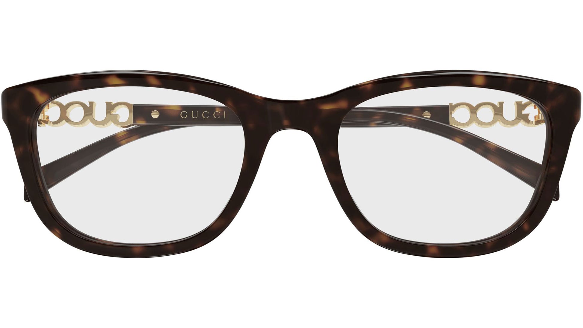 Gucci GG2035OA 002 glasses for women, featuring shiny dark havana rectangular recycled acetate frame and demo lenses. Brand line: Name Of Brand. Style code: GG2035OA. Color code: 002. Made in Japan. Authorized Gucci online reseller. Your glasses will include the original case and accessories and are covered by a 12-month global warranty.