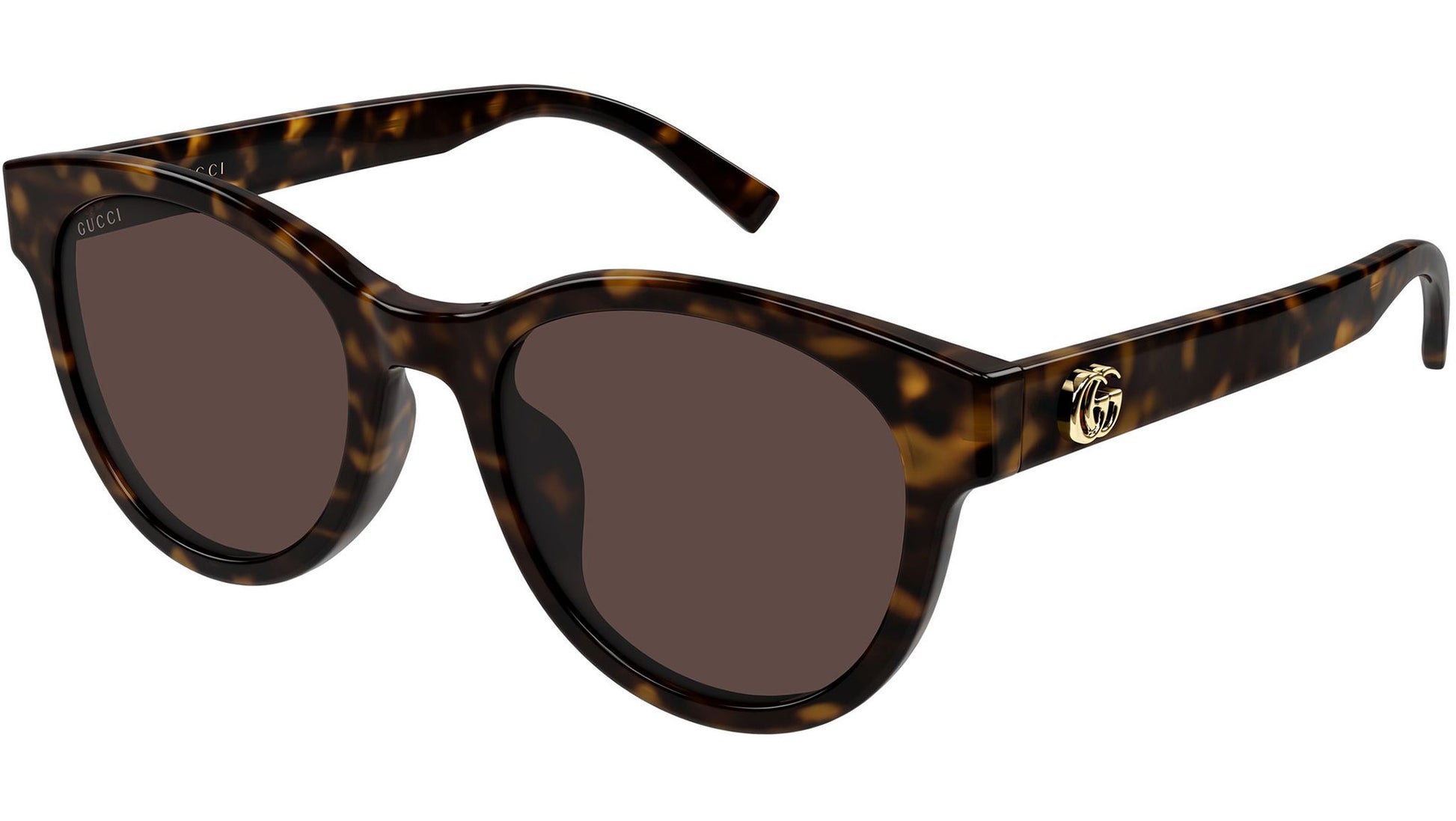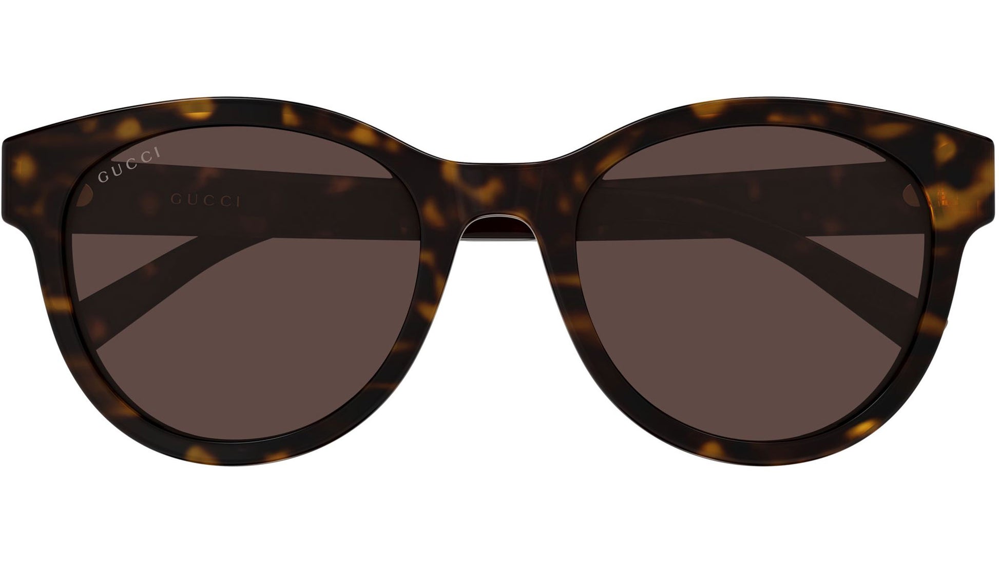 Gucci GG2127SK 002 sunglasses for women, featuring shiny dark havana panthos recycled acetate frame and solid brown bio nylon lenses. Brand line: Emblem. Style code: GG2127SK. Color code: 002. Made in Italy. Authorized Gucci online reseller. Your glasses will include the original case and accessories and are covered by a 12-month global warranty.