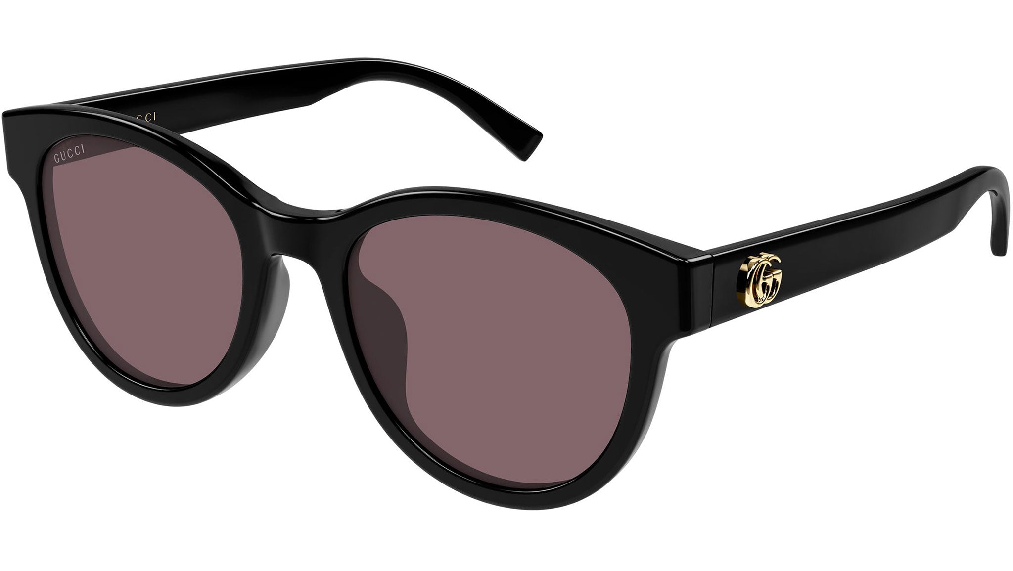 Gucci GG2127SK 003 sunglasses for women, featuring shiny black panthos recycled acetate frame and solid light burgundy bio nylon lenses. Brand line: Emblem. Style code: GG2127SK. Color code: 003. Made in Italy. Authorized Gucci online reseller. Your glasses will include the original case and accessories and are covered by a 12-month global warranty.