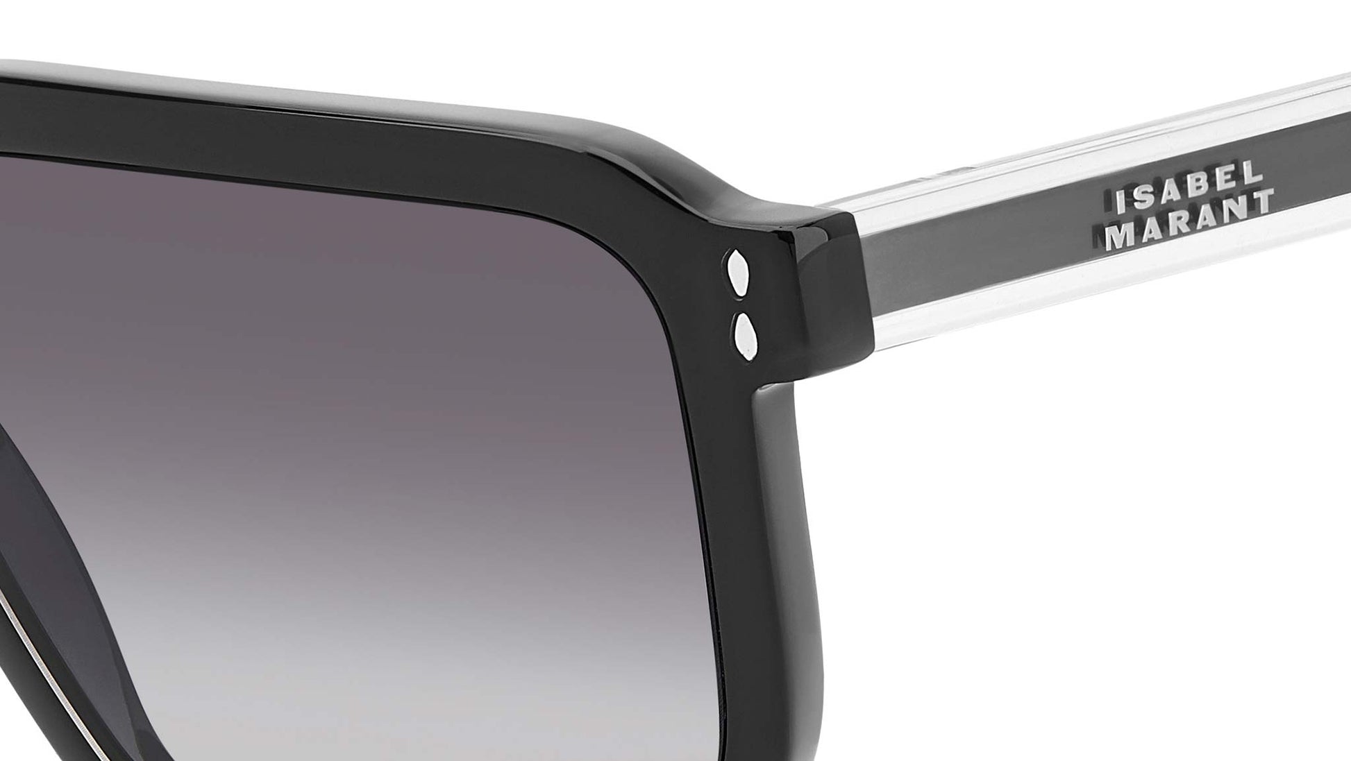 Isabel Marant IM 0165/S 180 9O black acetate geometric Sunglasses. The In Love collection from Isabel Marant taps into its technicolour soul, spiced up with clear temples to reveal contrast metal cores in a playful expression of the brand's refreshing vision. These acetate sunglasses enrich a classic square silhouette with angular lines, styled with leaf-shaped rivets and end tips in homage to Isabel Marant's hallmark style codes. Complete with exclusive logo lettering on the left temple.