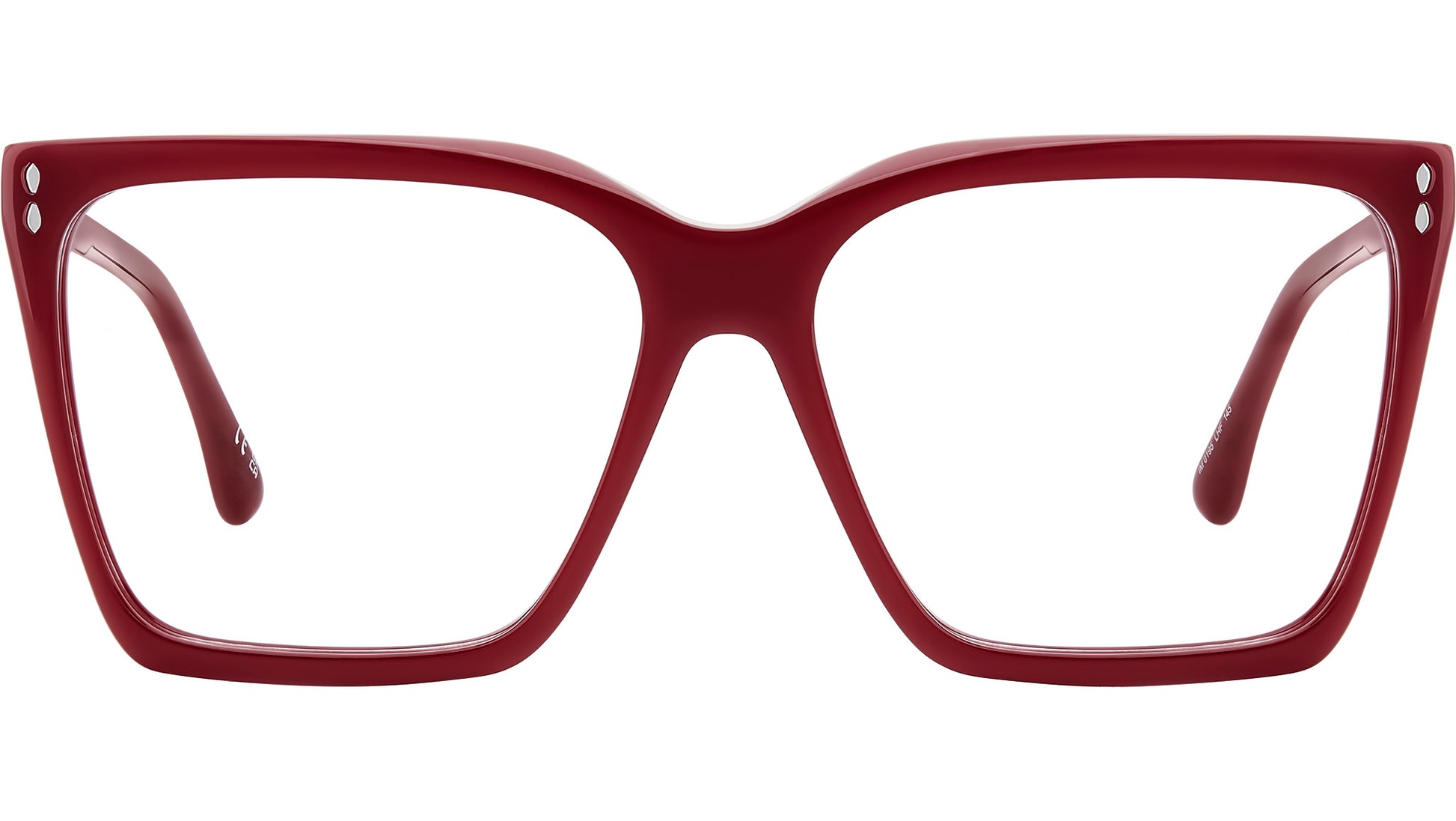Isabel Marant IM 0195 LHF glasses for women, featuring burgundy rectangular acetate frame and demo lenses. "The In Love" eyewear line from Isabel Marant enriches a selection of simple acetate frames with elegantly bevelled top edges: a refined embodiment of the designer's effortless Parisian-chic aesthetic. Boasting a feminine rectangular silhouette, these optical glasses are styled with shaped rivets and end tips in celebration of the brand's iconic leaf motif. Logo lettering on the left temple adds an exclusive touch. Brand line: The In Love. Style code: 108909. Color code: LHF. Authorized Isabel Marant online reseller. Your glasses will include the original case and accessories and are covered by a 12-month global warranty.
