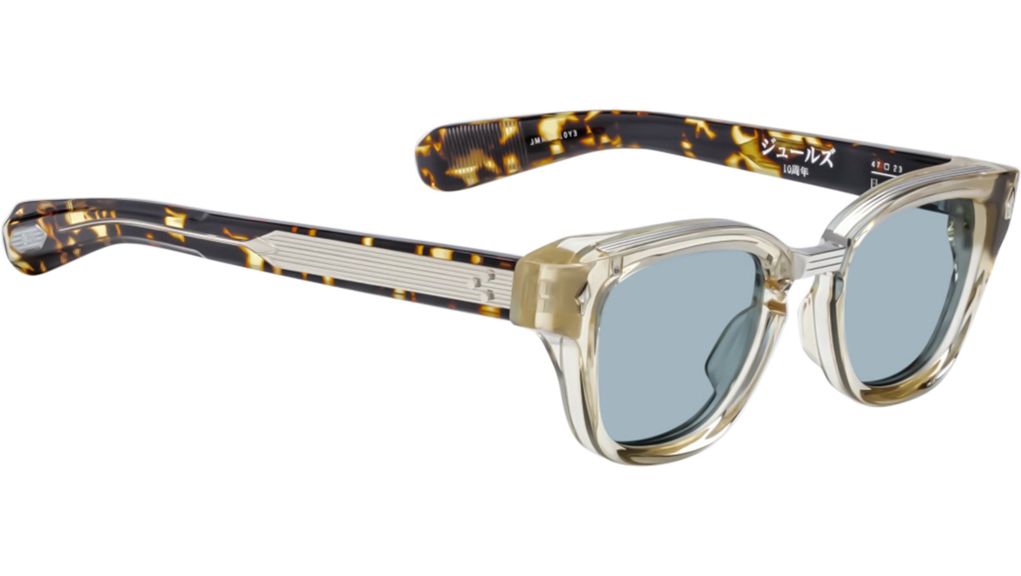 The Jacques Marie Mage Jules from the Decade Collection is a refined reinterpretation of the original Spring 2017 design, inspired by the unpretentious realism of French sculptor Aimé-Jules Dalou. Reimagined to celebrate the brand’s 10-year anniversary, this edition features a sculptural 12mm frame front and an elevated titanium bridge adorned with signature Art Deco details and refined linework. The design is enhanced with new wirecores showcasing Art Deco-inspired hairline engravings and temple tips finished with polished metal plaques bearing a special ‘10’ marking. Each pair is presented with a custom hard case, oversized microfiber cloth, and certificate of authenticity.