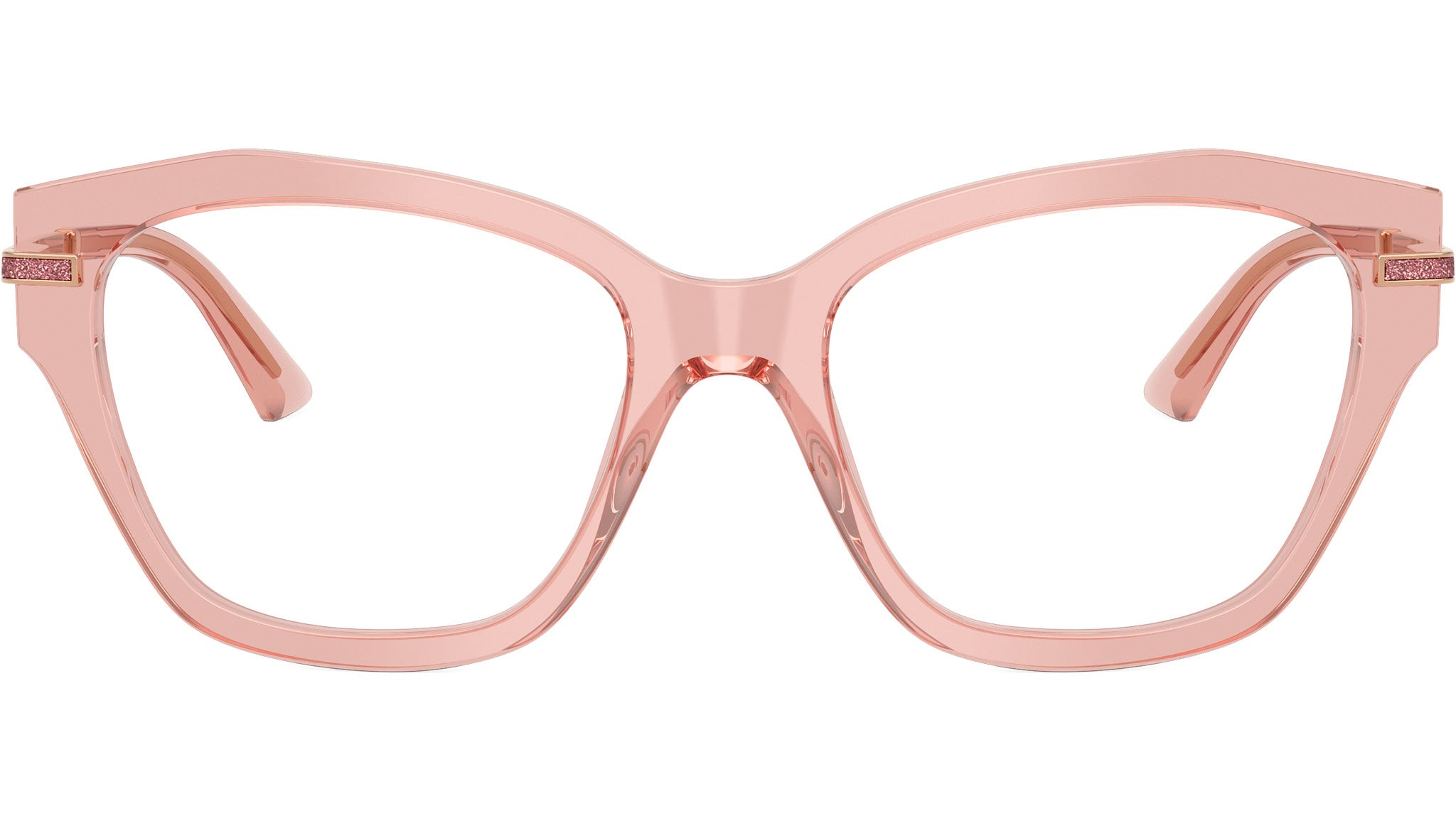 Jimmy Choo JC3043J 5079 glasses for women, featuring transparent pink cat eye acetate frame and demo lenses. High bridge fit. Brand line: Crystal. Style code: 0JC3043J. Color code: 5079. Authorized Jimmy Choo online reseller. Your glasses will include the original case and accessories and are covered by a 12-month global warranty.