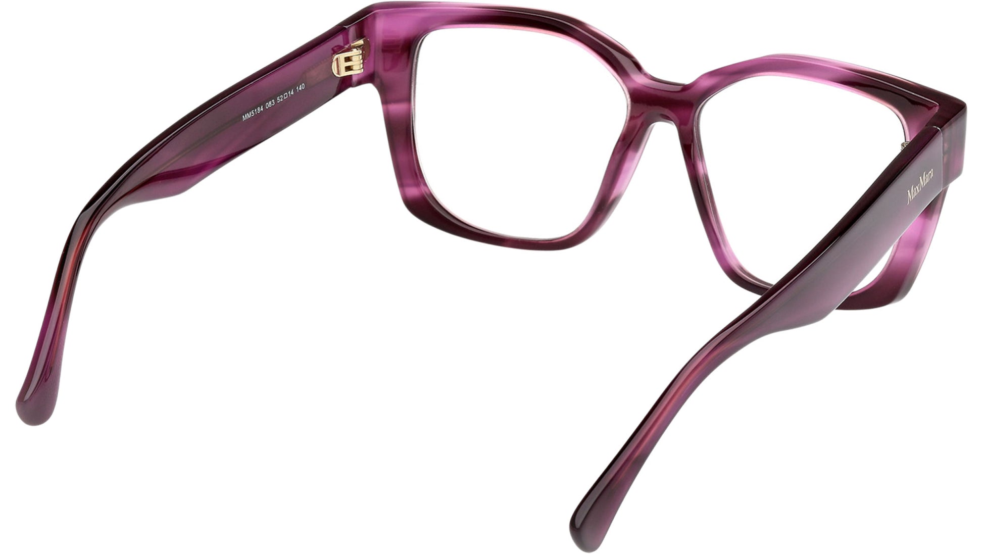 Max Mara MM5184 glasses for women model MM 5184 featuring violet / striped full-rim acetate frame and demo lenses. Made in Italy. Brand code: MM5184. Color code: 083. Authorised Max Mara Online Reseller. Your glasses will include the original case and accessories and will be covered by a 12-month global warranty.