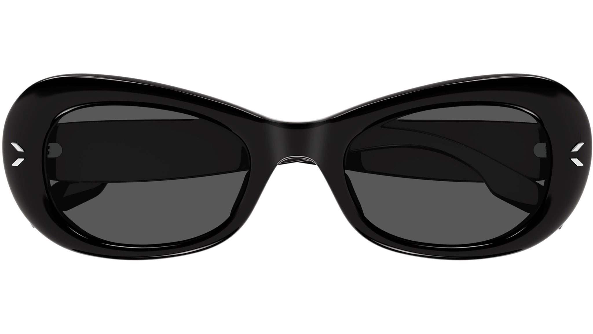 MCQ Collection 0 sunglasses model MQ0383S color code 001 featuring shiny black recycled acetate frame and solid smoke lens.