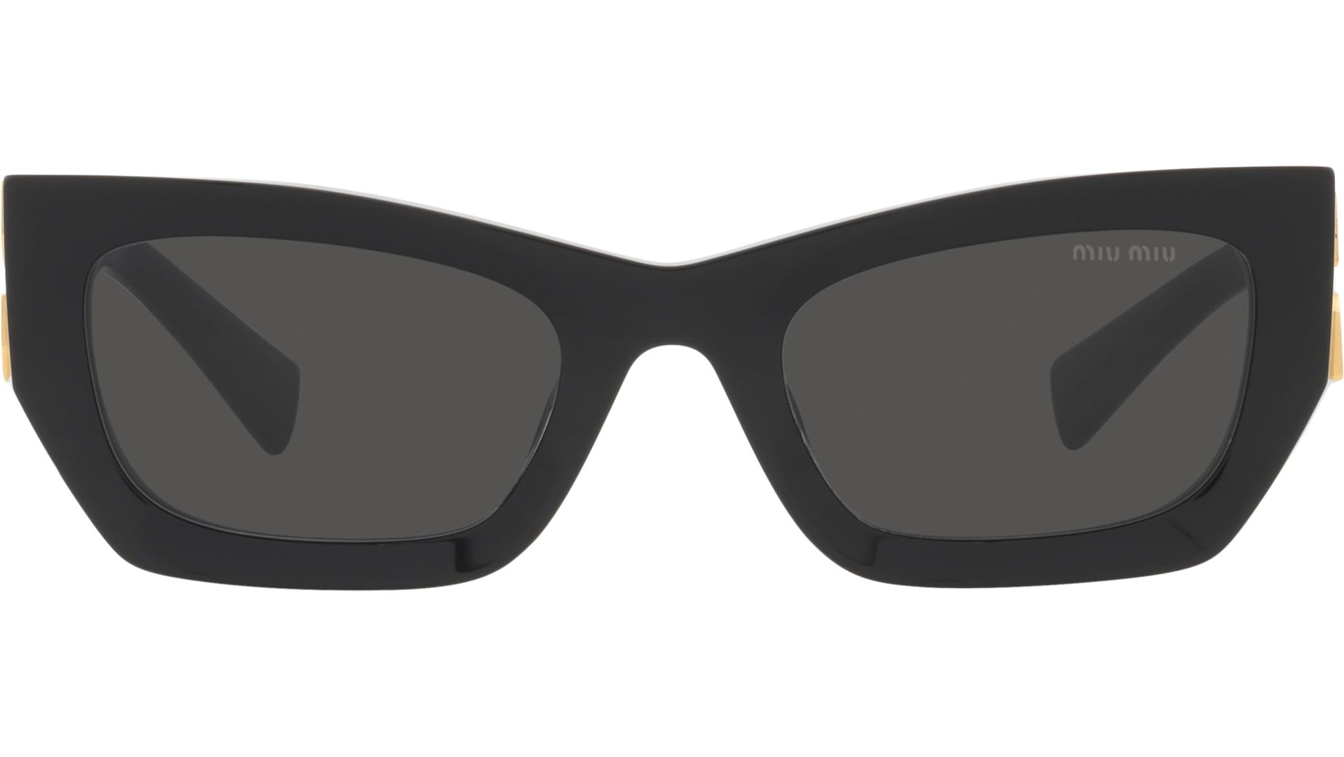 Miu Miu sunglasses model MU 70US black frame variant, color code 1AB5S0 with dark grey lens. The sunglasses from Miu Miu eyewear collection are unique creations, the result of the constant stylistic research and skillful craftsmanship of the brand. A unique blend of playful experimentation and rich detailing that perfectly embodies the stylistic codes that have always characterized the House, confirming once again Miu Miu’s undisputed talent in combining unconventional designs with retro-inspired romanticism.