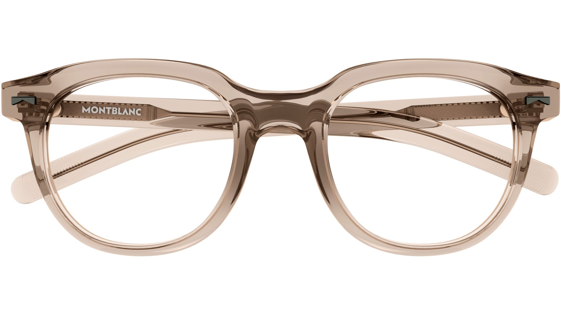 Montblanc Millennials optical collection model MB0261O color code 004 featuring shiny transparent light brown frame and brown temple.