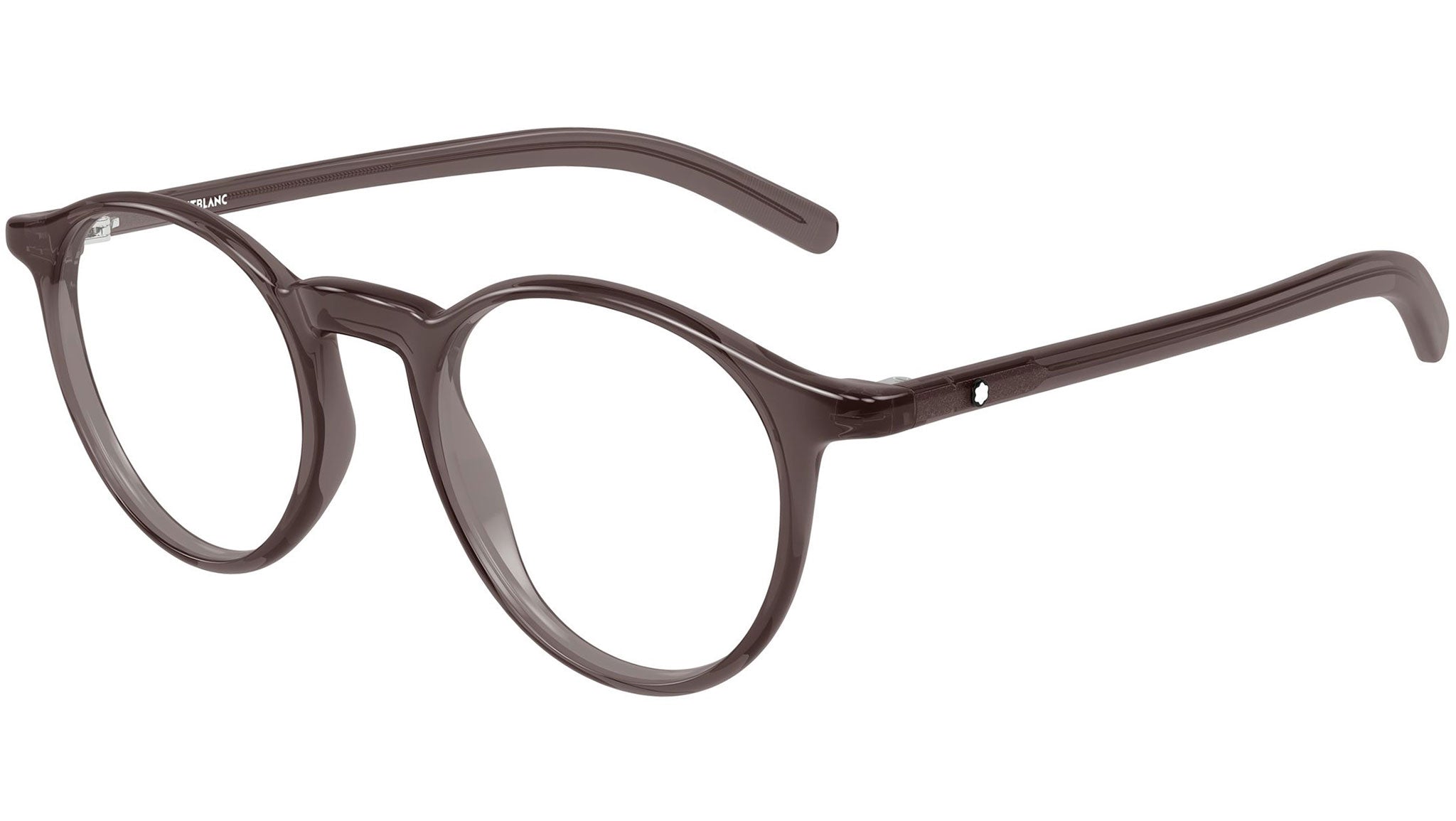 Montblanc MB0329O 006 glasses for men, featuring shiny transparent mauve panthos recycled injected acetate frame and demo lenses. Brand line: Snowcap. Style code: MB0329O. Color code: 006. Made in Italy. Authorized Montblanc online reseller. Your glasses will include the original case and accessories and are covered by a 12-month global warranty.
