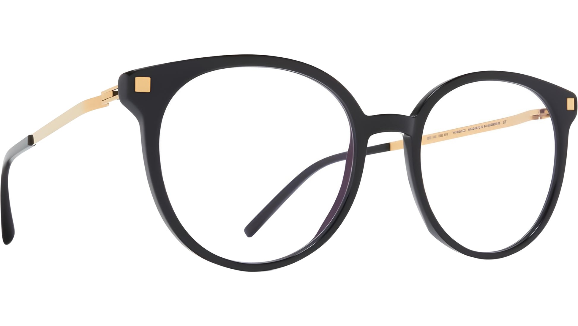 Mykita JULLA 919 glasses for women, featuring black gold butterfly acetate frame and demo lenses. The LITE collection embodies modern minimalism with contemporary shapes and balanced constructions that offer exceptional comfort and refined aesthetics. Featuring pure stainless steel frames and mixed material models with acetate elements, the collection is defined by slim 3mm steel temples and a distinctive spiral hinge.. Brand line: LITE. Style code: 10029505. Color code: 919. Made in Germany. Authorized Mykita online reseller. Your glasses will include the original case and accessories and are covered by a 12-month global warranty.