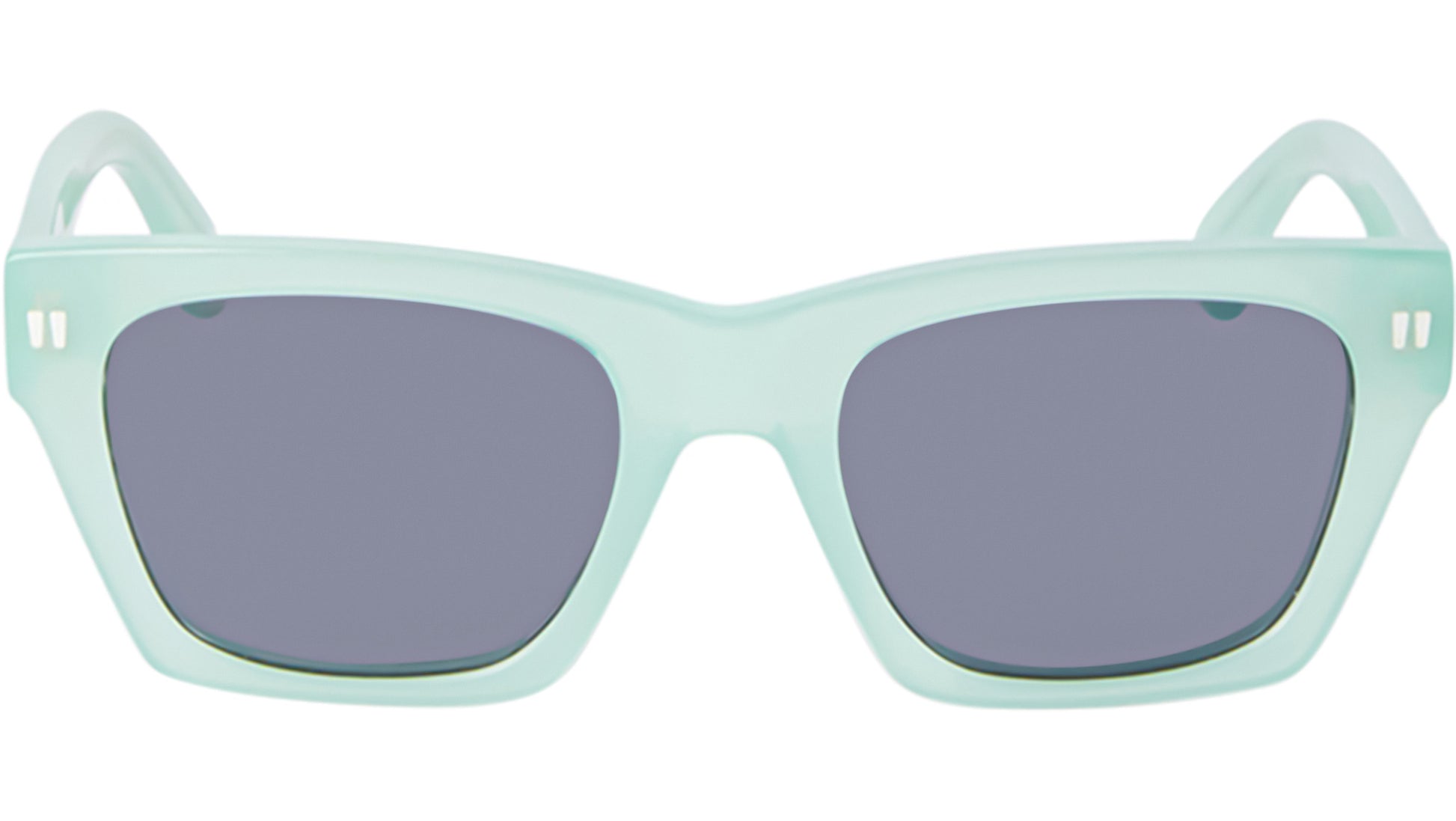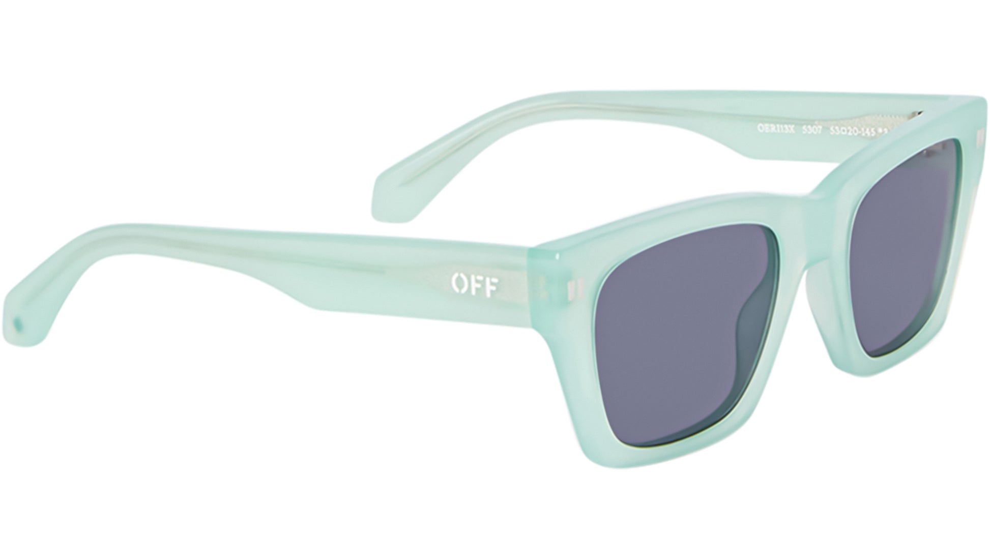 The Off-White Valdez sunglasses redefine geometric elegance with a bold square silhouette, subtly extended at the sides for a striking yet refined look. Crafted from acetate with impeccably clean profiles, this design embodies the brand’s signature aesthetic. A standout feature is the iconic Off-White™ quotation marks, reinterpreted this season through precise lasered detailing combined with white infill for a smooth, contemporary finish. The OFF logo on the temples adds an unmistakable brand signature, enhancing the model’s distinctive identity. Available in four sophisticated colour variations—solid black and white, alongside two milky shades in grey and sage green—these sunglasses offer a modern expression of Off-White’s unmistakable style.