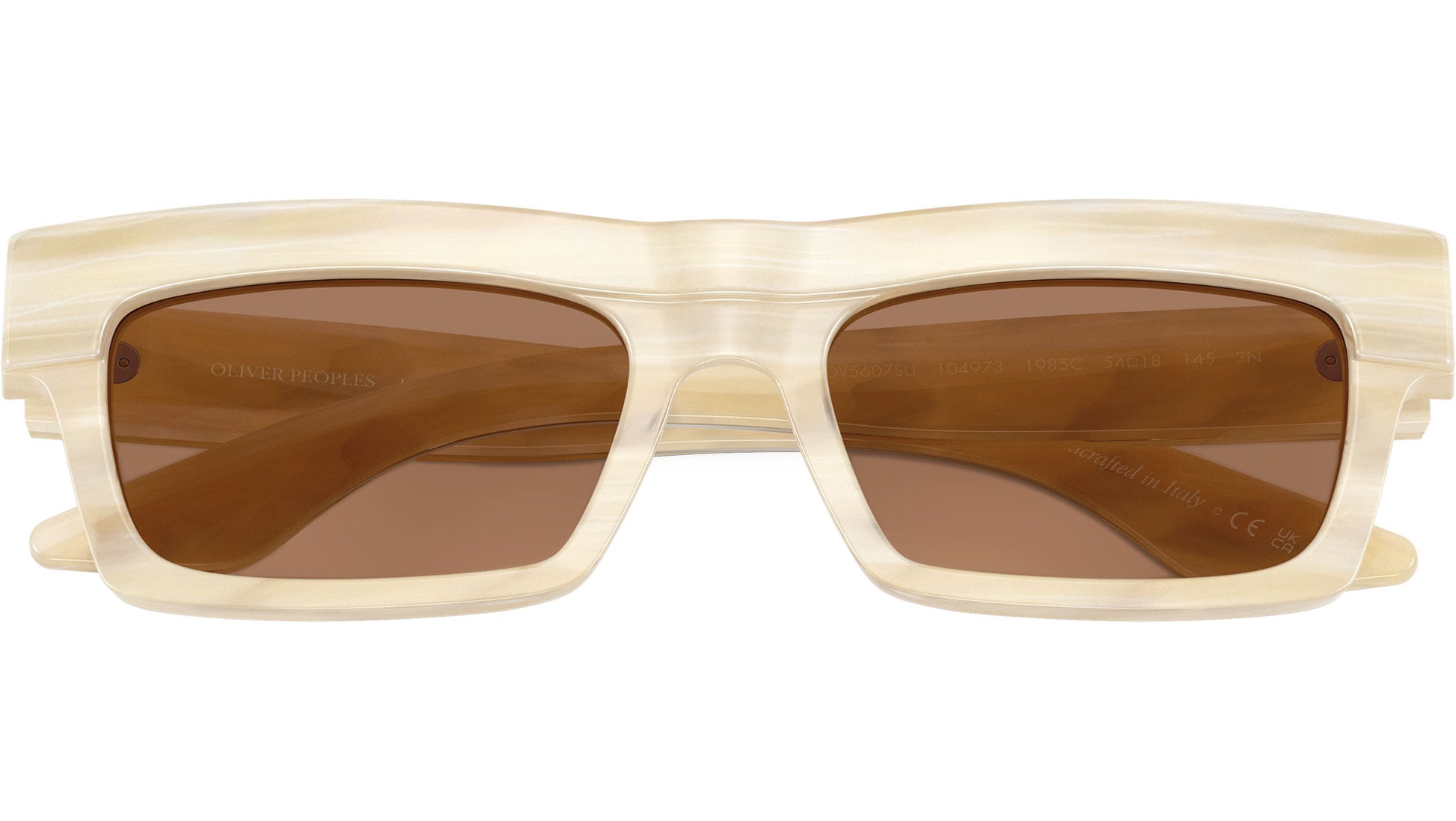 Oliver Peoples 1985C OV5607SU 104973 sunglasses for women, featuring beige silk d-frame acetate frame and brown CR-39 lenses. Universal fit. Brand line: Collaboration. Style code: 0OV5607SU. Color code: 104973. Made in Italy. Authorized Oliver Peoples online reseller. Your glasses will include the original case and accessories and are covered by a 12-month global warranty.