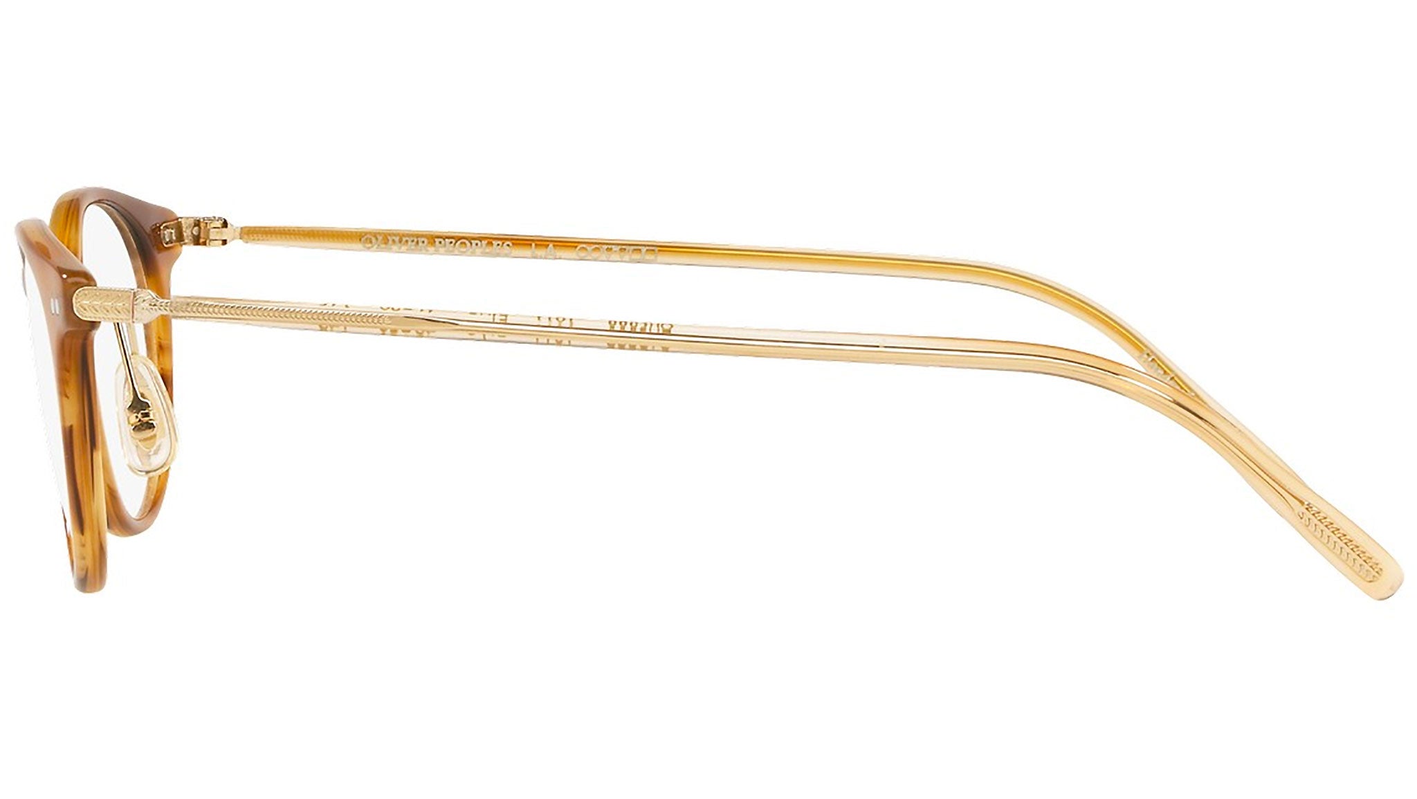 This vintage-inspired quintessentially Oliver Peoples style features a thin acetate frame front with ultra-fine temples and an intricate metal endpiece. The engraved feather filigree corewire is laminated between two pieces of acetate, resulting exquisite and elaborate detailing for the wearer.
