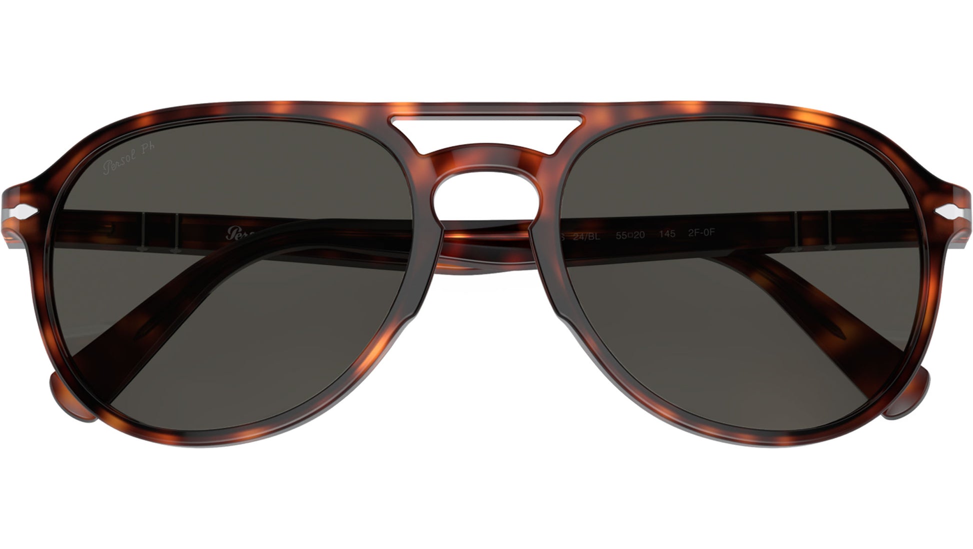 Persol PO3235S acetate unisex sunglasses, color code 24/BL in havana with grey lenses.