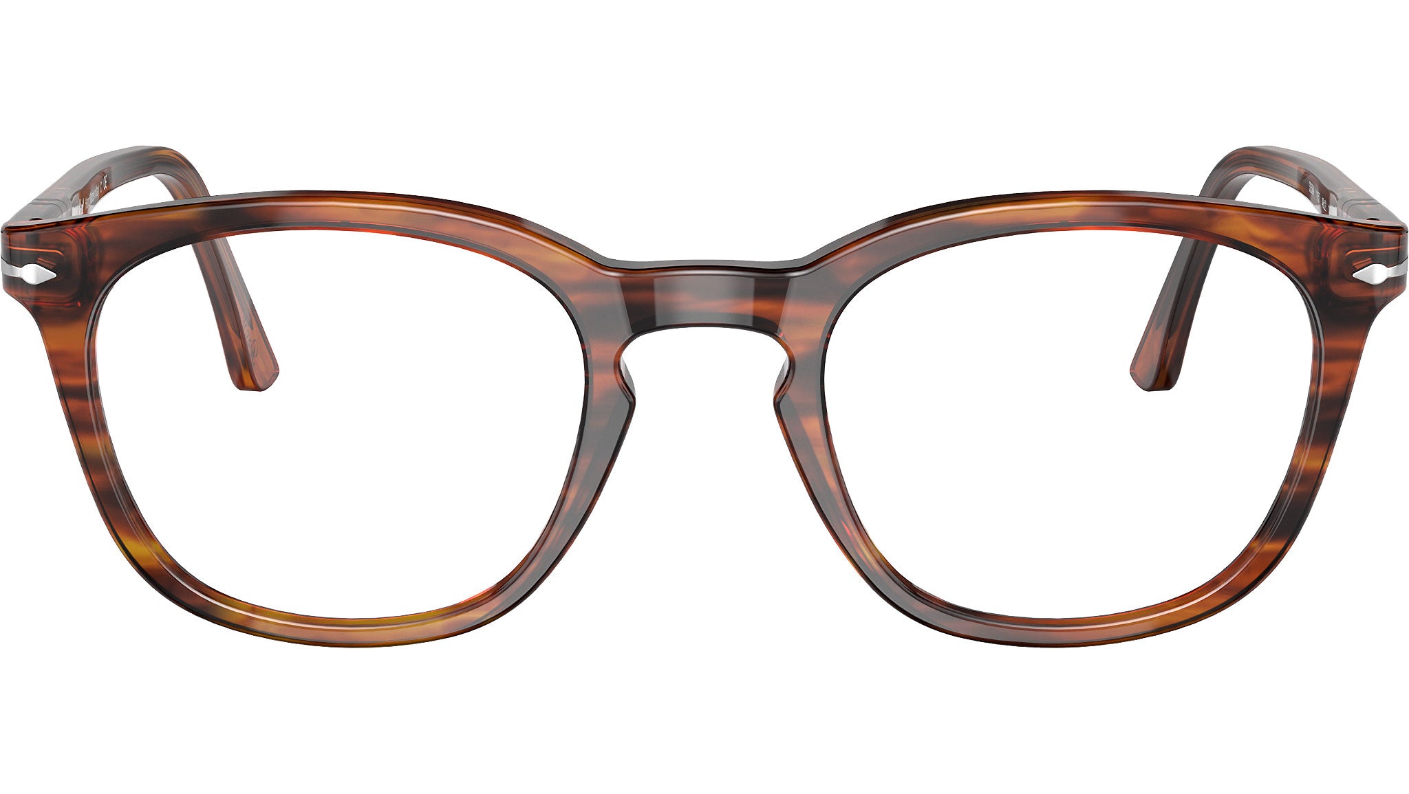 Persol PO3258V acetate optical frame for men and women, color code 1157 in striped brown with demo lens.