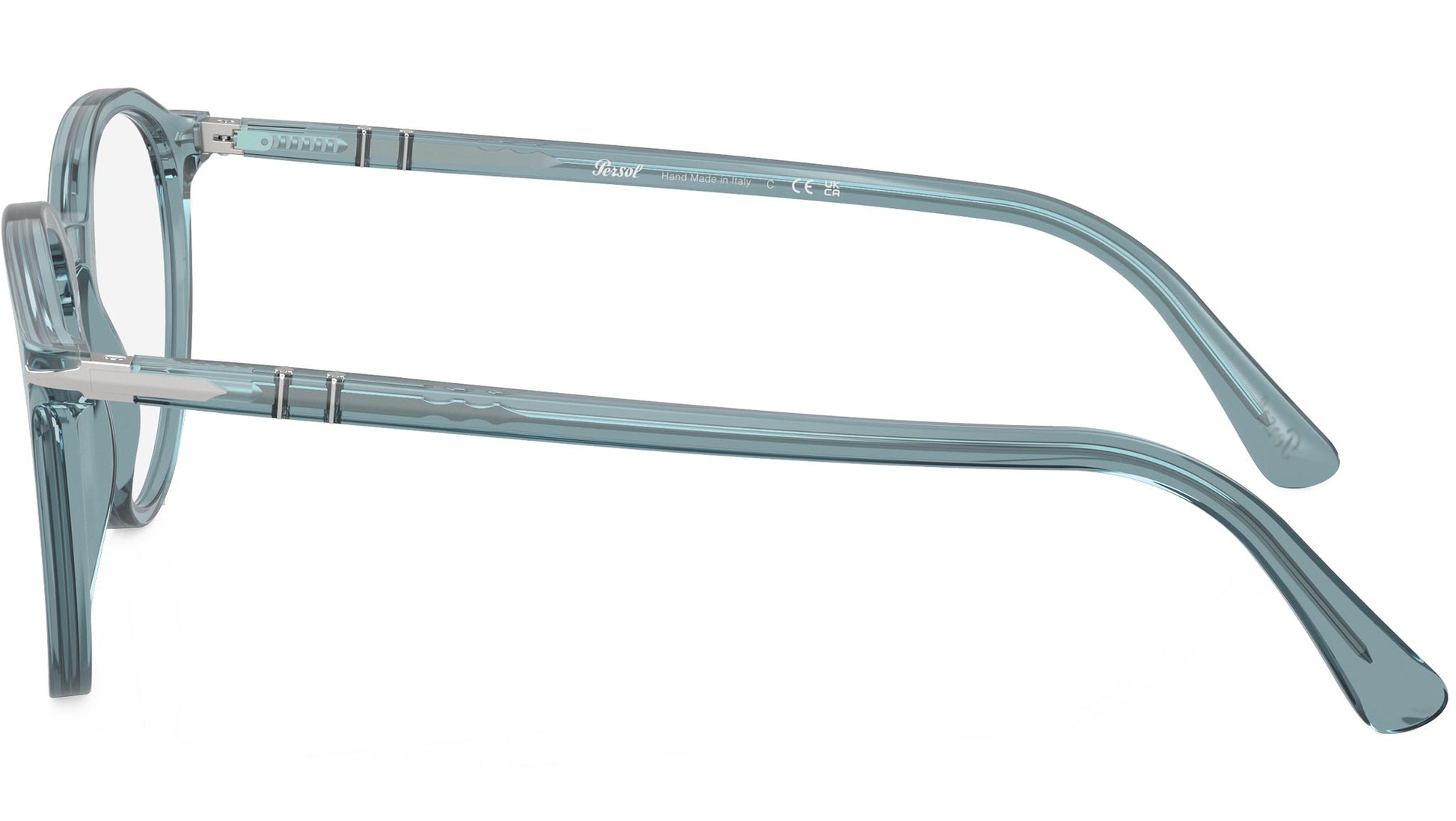 Persol glasses model PO3353V color code 1204 featuring transparent blue full rim acetate frame and demo lenses. Embodying its evocative name, which signifies “for sun” Persol stands as a testament to a rich heritage of superior craftsmanship and excellence and seamlessly blends aesthetics and technology, representing the epitome of handcrafted Italian manufacturing. Renowned for its timeless design and artistry, the brand has become a beloved choice within the realm of cinema. Authorised Persol Online Reseller. Your glasses will come including the original case and accessories and will be covered by 12 month global warranty.