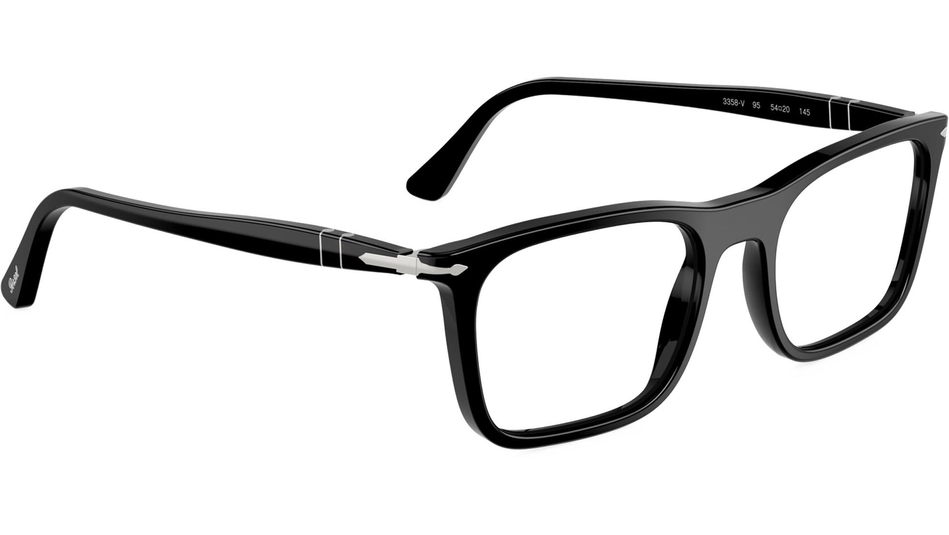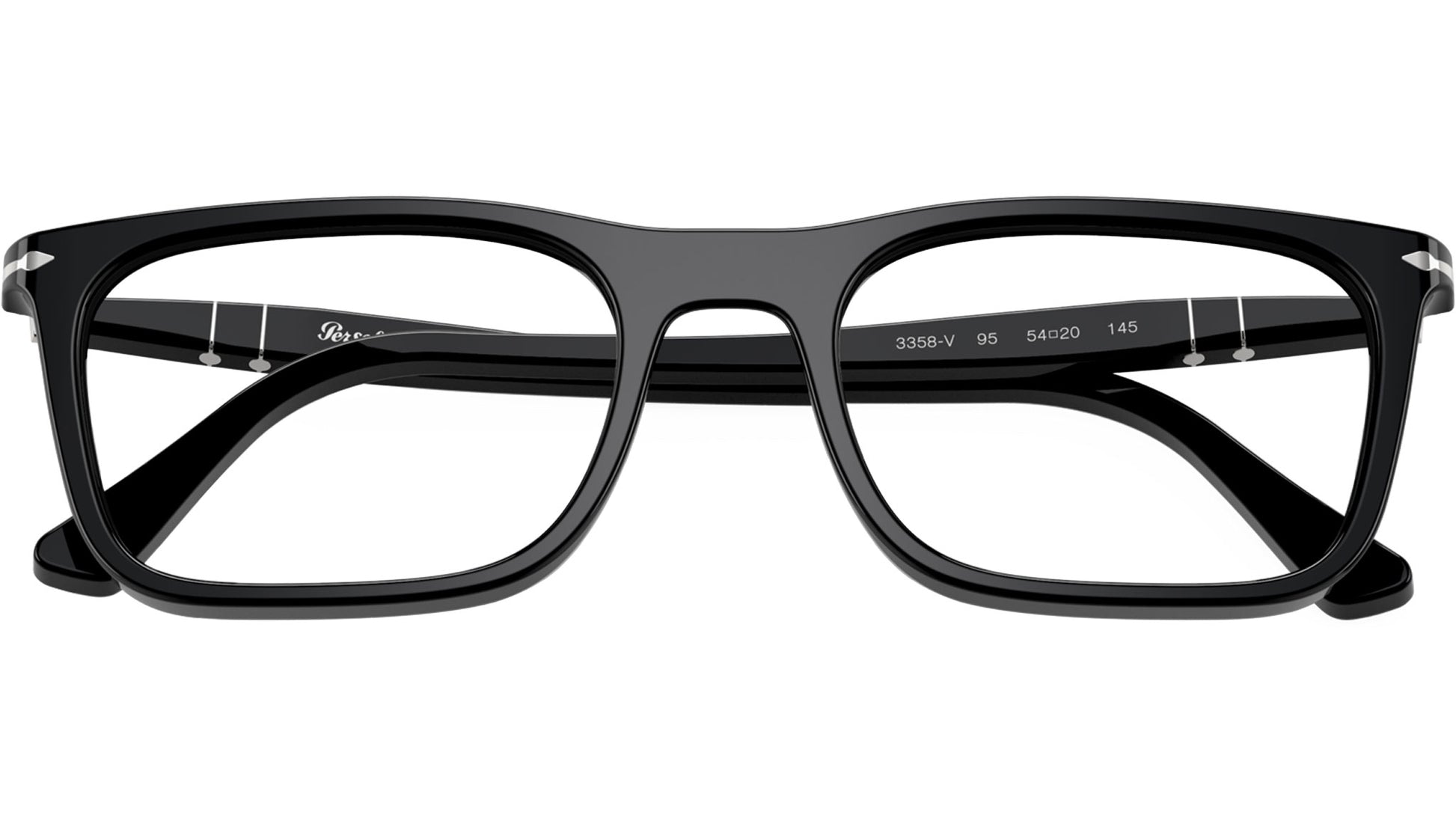Persol unisex optical frame model PO3358V featuring black full rim acetate frame and base 4 demo lens. High bridge fit. Frame line: Galleria. Brand code: 0PO3358V. Color code: 95. Authorised Persol Eyewear Online Reseller. Your glasses will come including the original case and accessories and will be covered by 12 month global warranty.