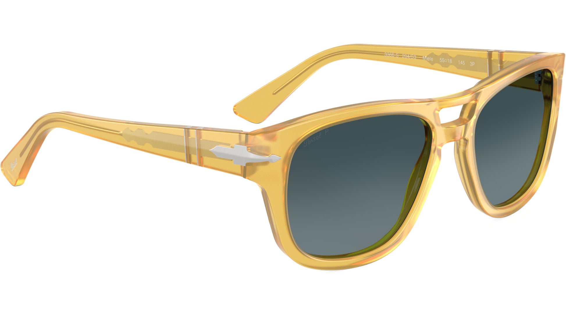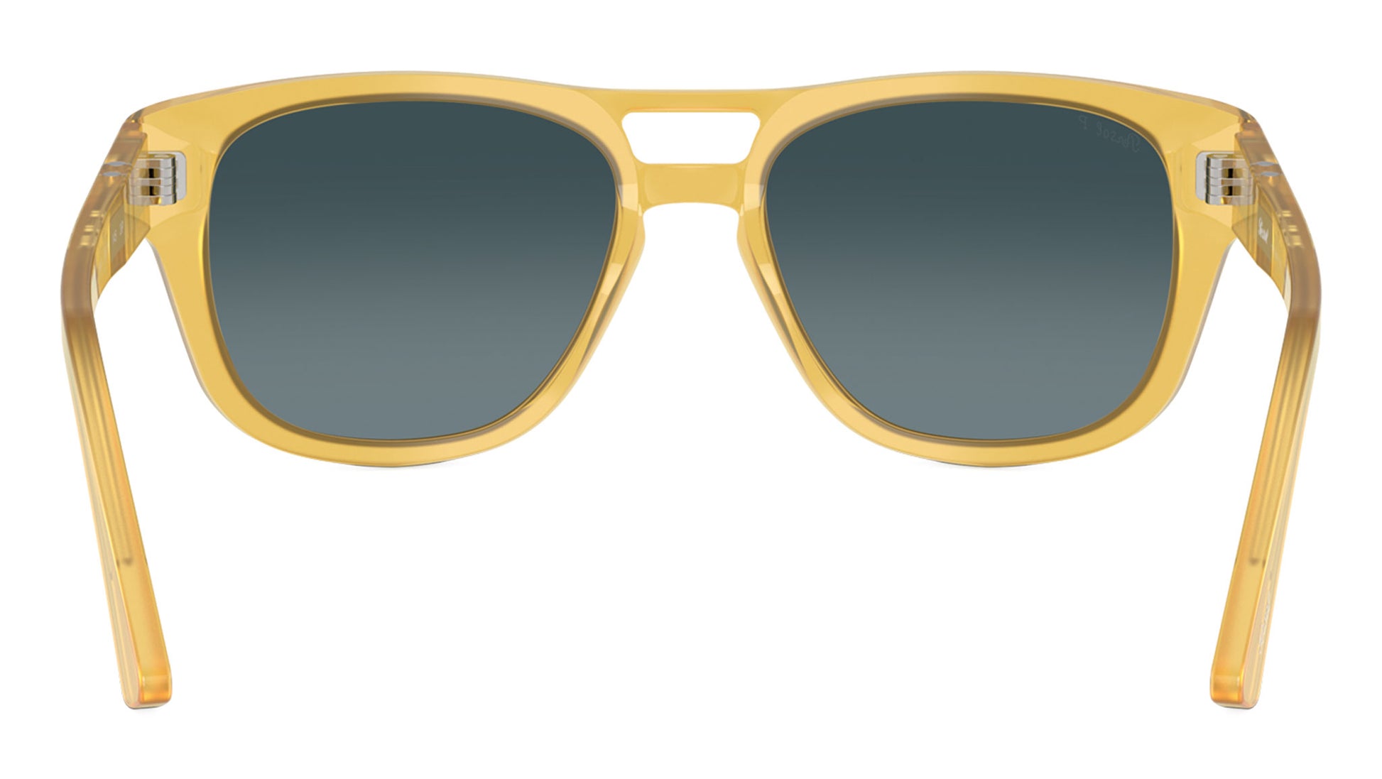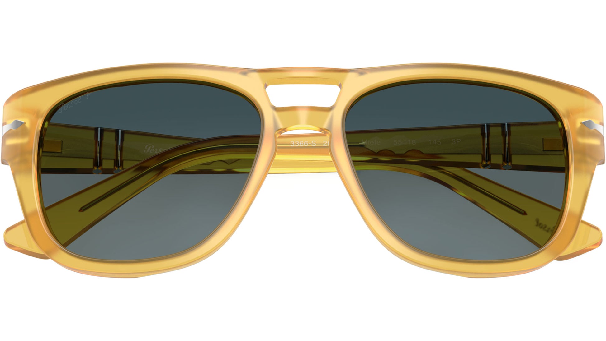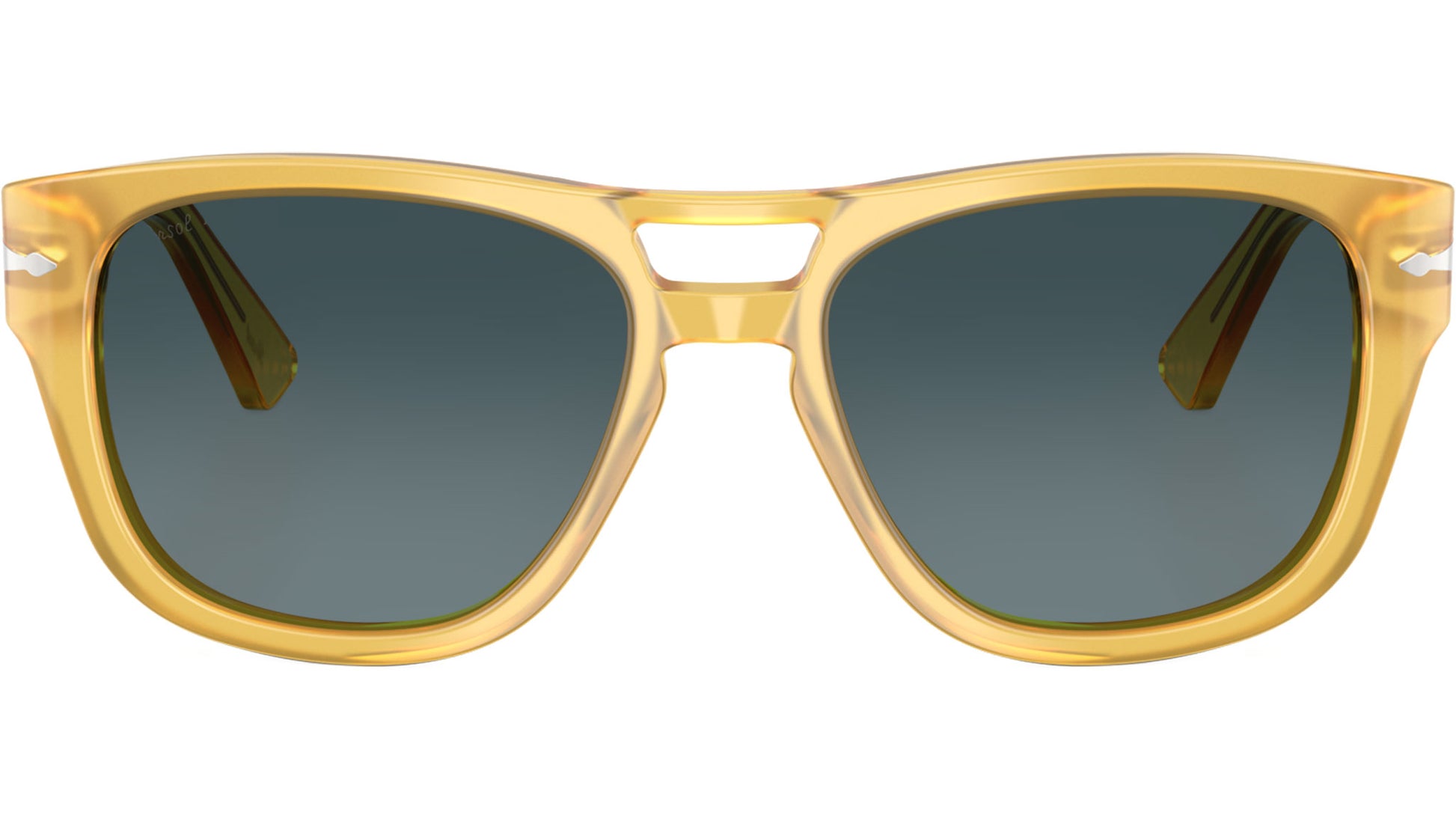 Persol unisex sunglasses model PO3366S featuring miele full rim acetate frame and base 6 light blue gradient dark blue lenses. High bridge fit. Frame line: Sartoria. Brand code: 0PO3366S. Color code: 204/S3. Authorised Persol Eyewear Online Reseller. Your glasses will come including the original case and accessories and will be covered by 12 month global warranty.