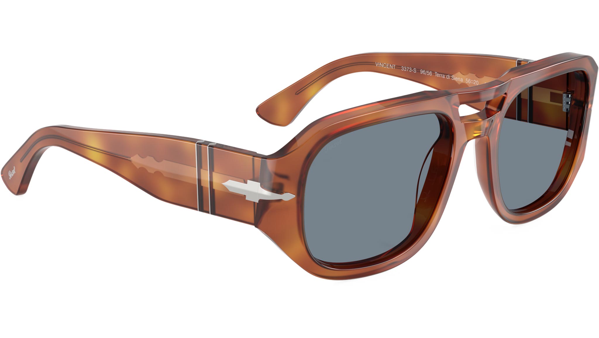 Persol sunglasses for men and woman model PO3373S 96/56 featuring terra di siena acetate frame and light blue base 6 lenses. High bridge fit. Frame line: Sartoria. Brand code: 0PO3373S. Color code: 96/56. Authorised Persol Eyewear Online Reseller. Your glasses will come including the original case and accessories and will be covered by 12 month global warranty.
