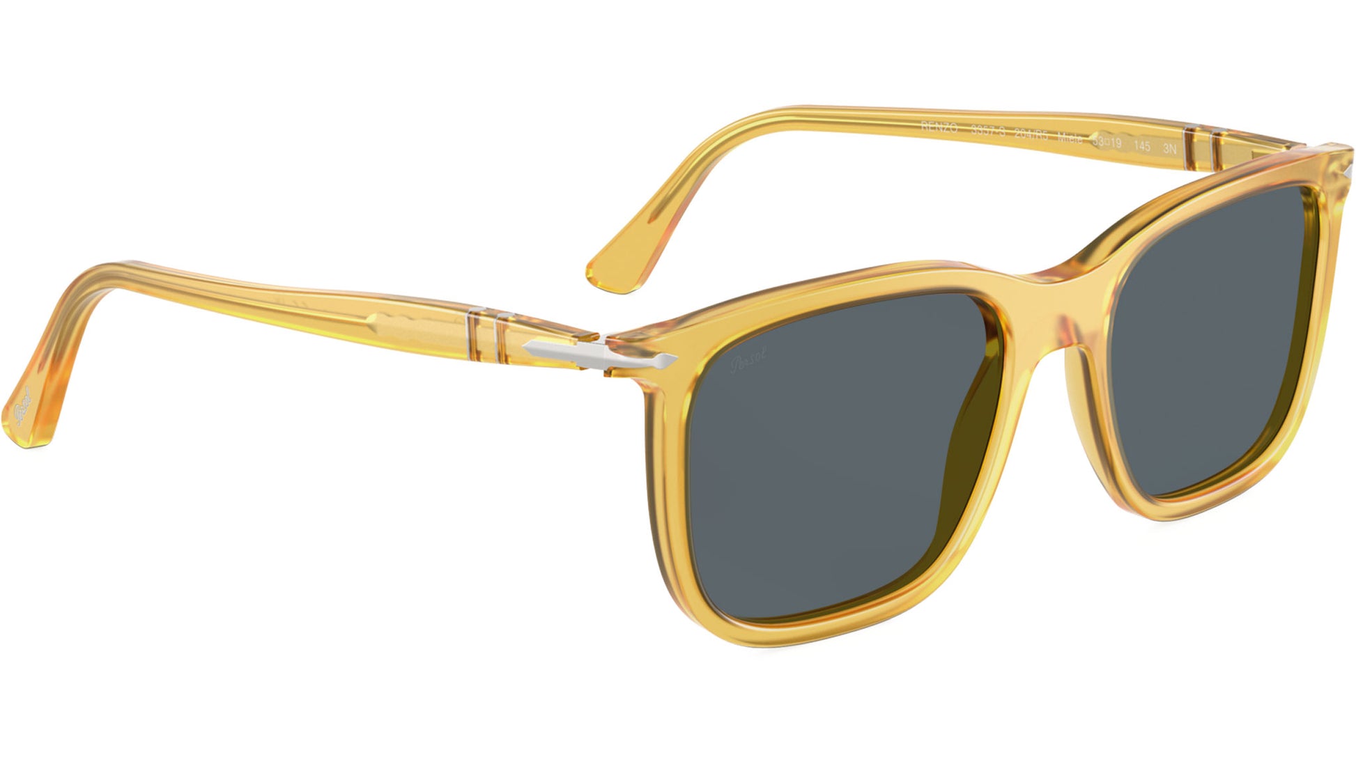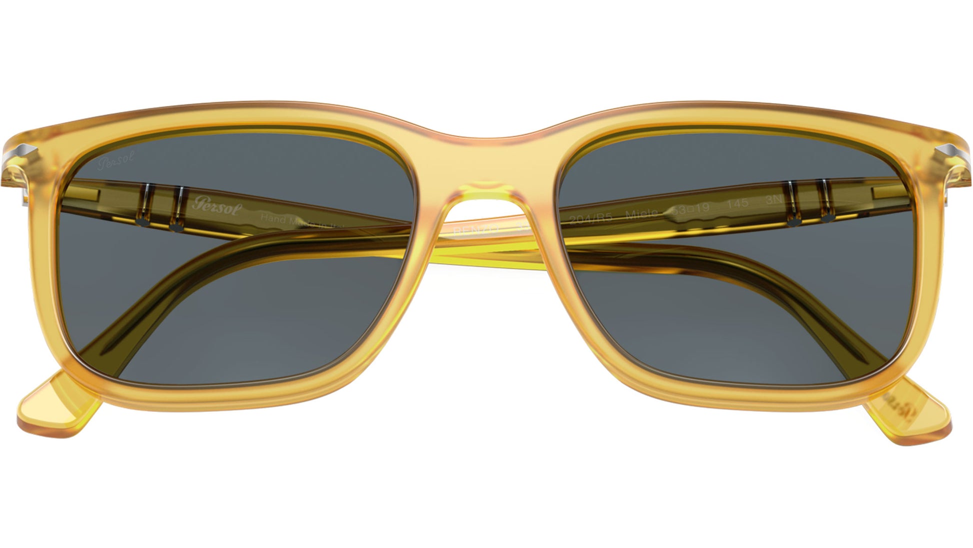 Persol unisex sunglasses model PO3357S featuring miele full rim acetate frame and base 4.25 blue lenses. High bridge fit. Frame line: Icona Galleria. Brand code: 0PO3357S. Color code: 204/R5. Authorised Persol Eyewear Online Reseller. Your glasses will come including the original case and accessories and will be covered by 12 month global warranty.