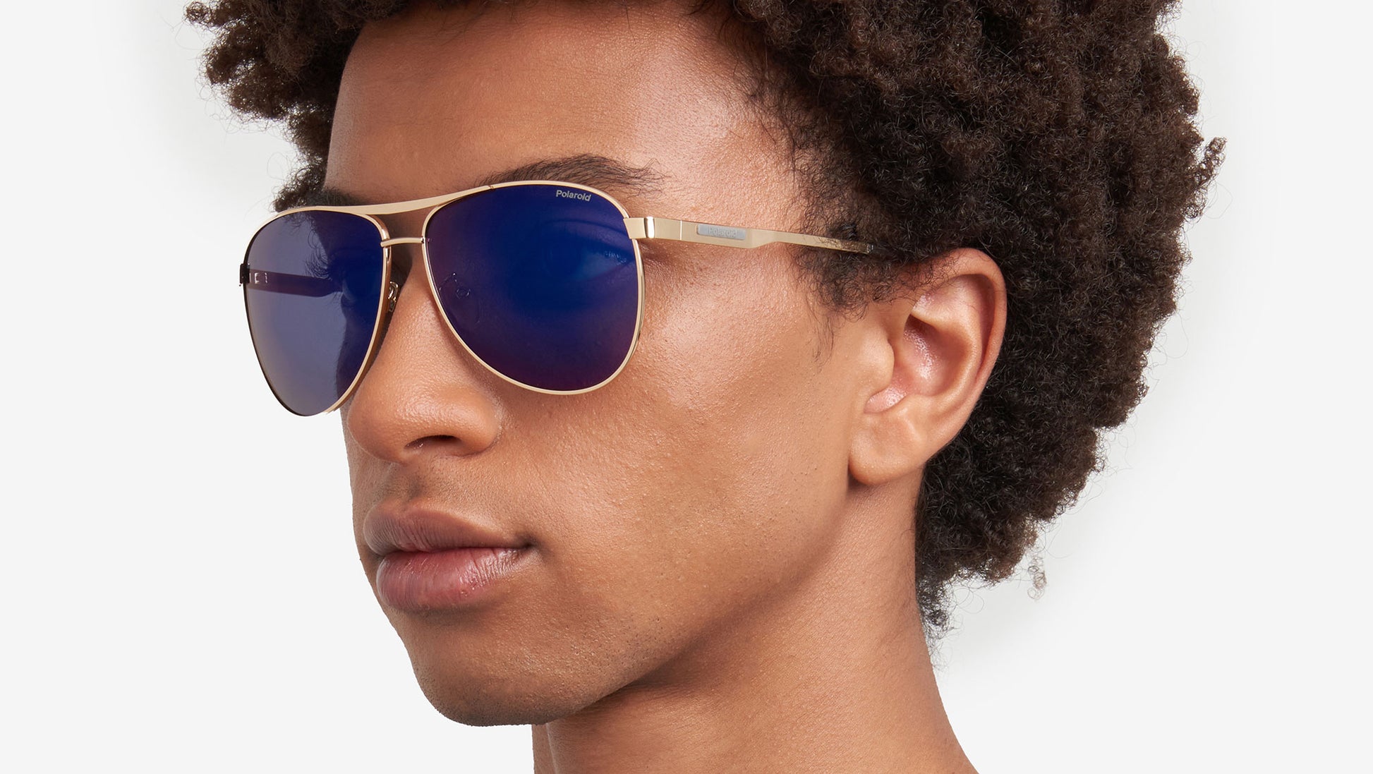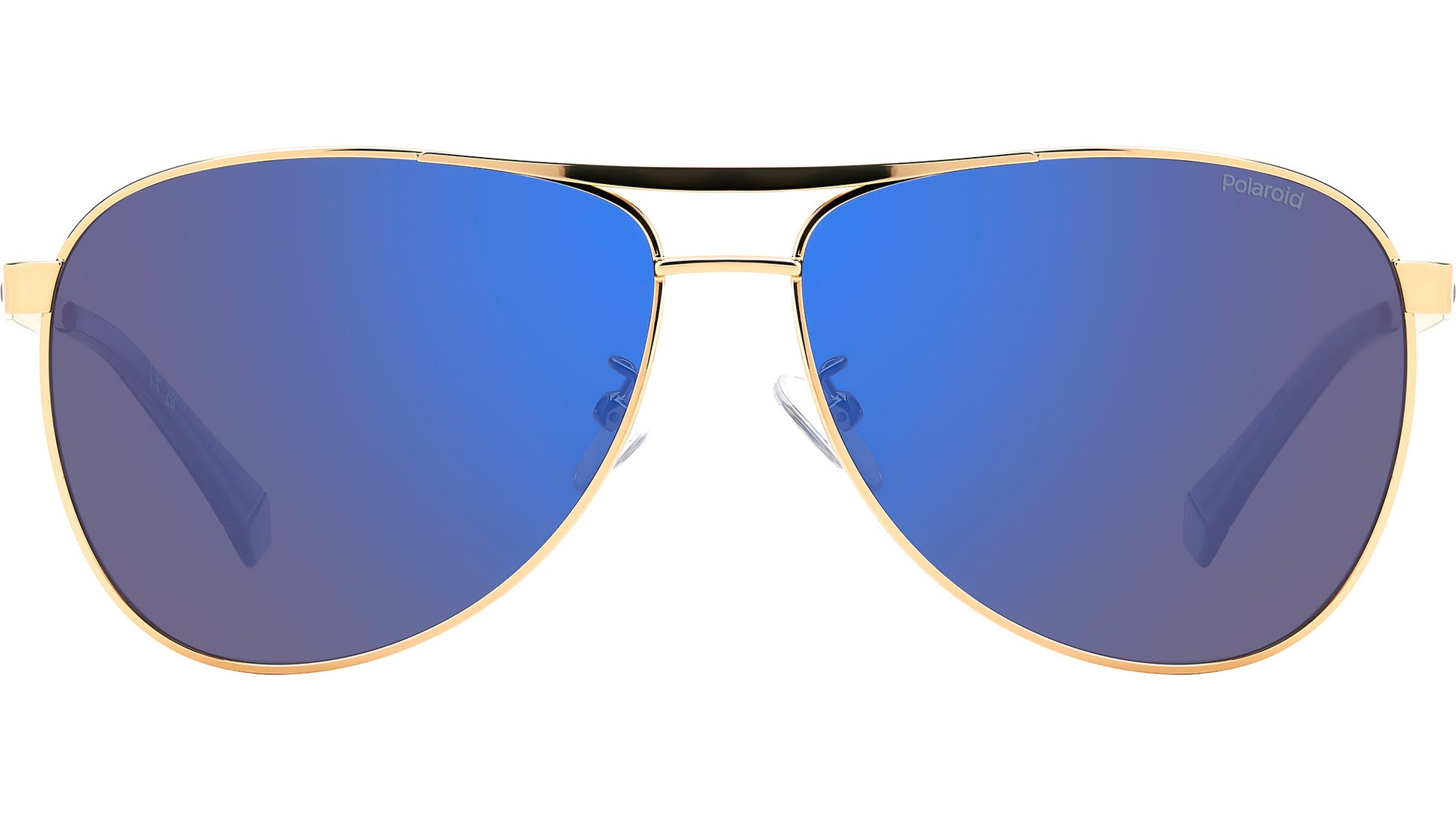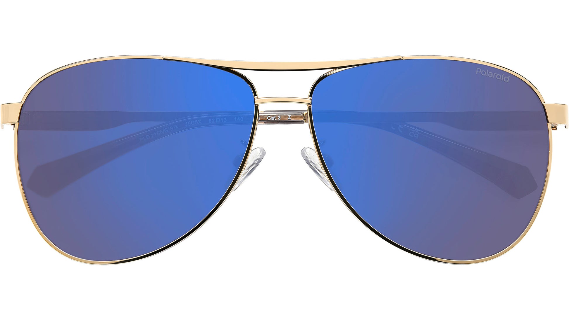 Polaroid PLD 2160/G/S/X J5G 5X sunglasses for men, featuring gold pilot metal frame and blue mirror polarized lenses. These Polaroid sunglasses with aviator frames are a high-altitude style for men who look to the horizon. The stainless steel front is lightweight, connected at the centre by a double bridge and practical nose pads. The temples are minimalist, enriched by a rubber Polaroid logo and acetate end tips with the brand's iconic insert. They can hold prescription lenses, and the Global Fit adapts to all face shapes. Brand line: Active. Style code: 206715. Color code: J5G 5X. Authorized Polaroid online reseller. Your glasses will include the original case and accessories and are covered by a 12-month global warranty.