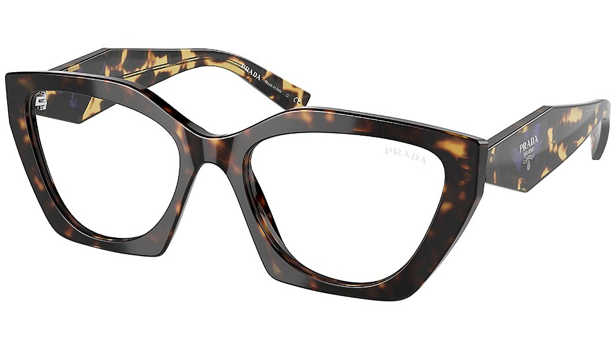 Prada sunglasses model PR 26YS havana frame variant, color code 2AU08N with clear blue light filter lens. Prada represents the best of Italian culture and tradition. It is one of the most innovative, prestigious and widely recognized brands in the fashion and luxury goods industries, with a keen attention to details and new trends.