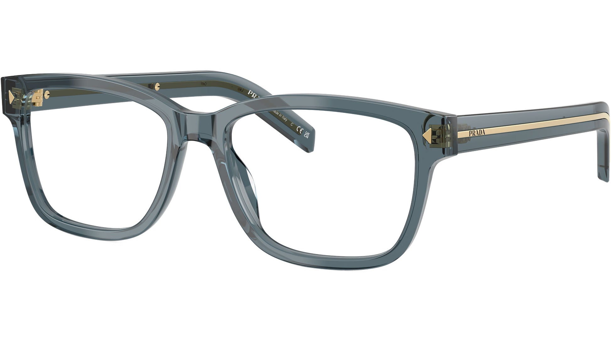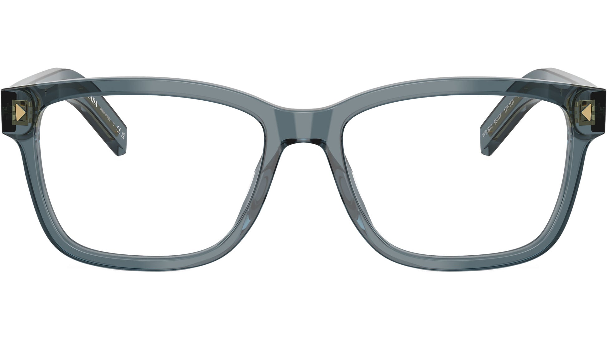 Prada PR B10V 17T1O1 glasses for men, featuring transparent ocean rectangular acetate frame and demo lens . High bridge fit. Brand line: Signature. Style code: PRB10V. Color code: 17T1O1. Made in Italy. Authorized Prada online reseller. Your glasses will include the original case and accessories and are covered by a 12-month global warranty.