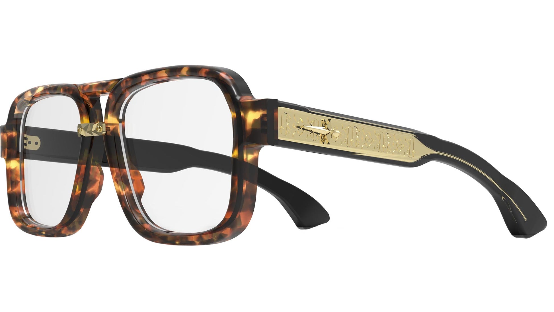 Pugnale Eyewear optical model N443V Excess color code 43 in havana brown. Full rim aviator acetate frame with demo lens. The Nicolò collection in the Pugnale house is aimed at a predominantly male audience. Tradition, lightness, strength and shine are the main characteristics of this collection. The use of traditional materials such as cellulose acetate is combined with the search for materials with strong technological connotation such as titanium, magnesium and carbon; all accentuated with preciousness by the combination of silver inserts that.