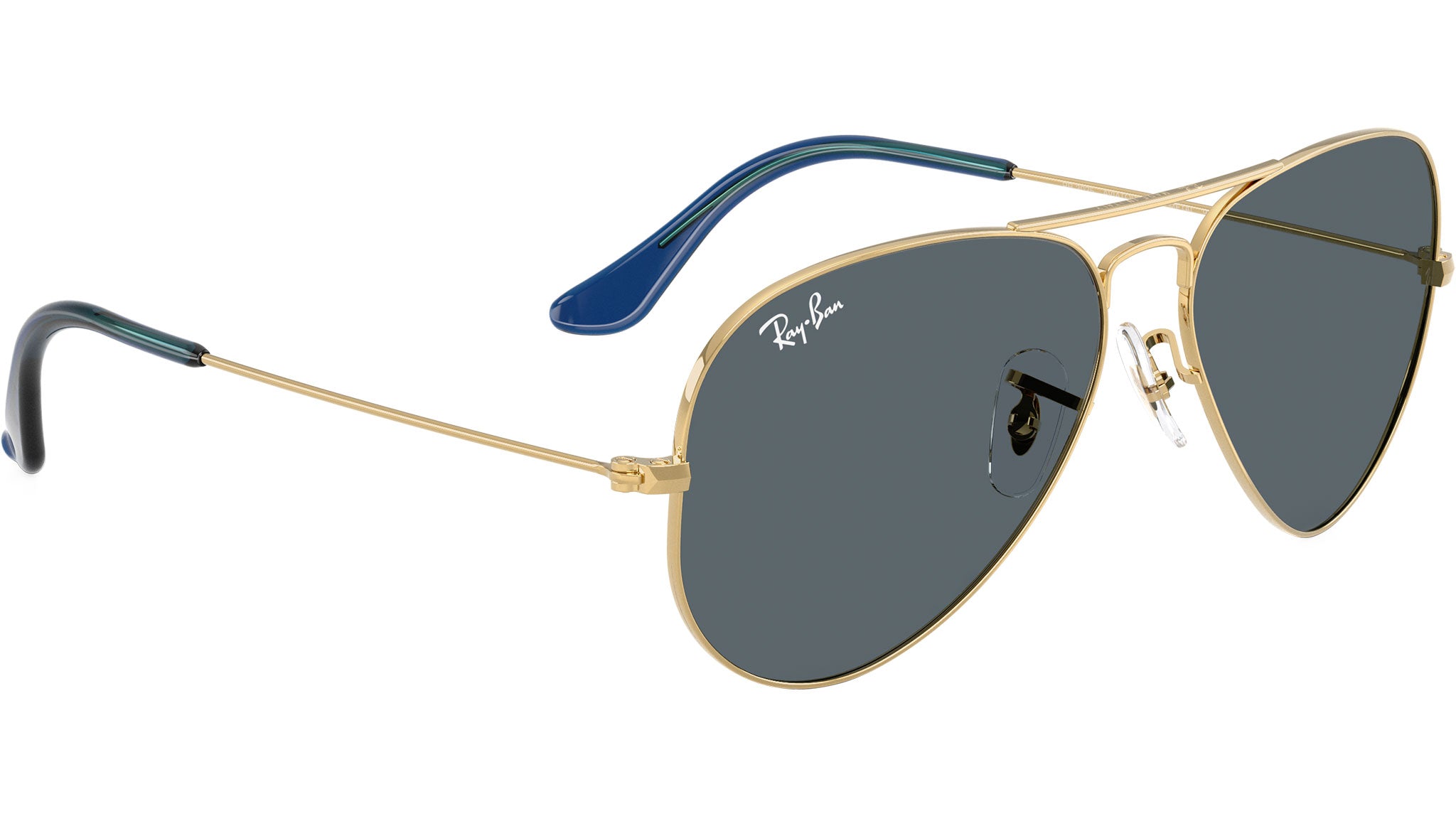 Ray-Ban Aviator RB3025 9278R5 sunglasses for men and woman, featuring arista gold pilot metal frame and blue glass lenses. Adjustable nosepads. Brand line: Legacy. Style code: 0RB3025. Color code: 9278R5. Authorized Ray-Ban online reseller. Your glasses will include the original case and accessories and are covered by a 12-month global warranty.