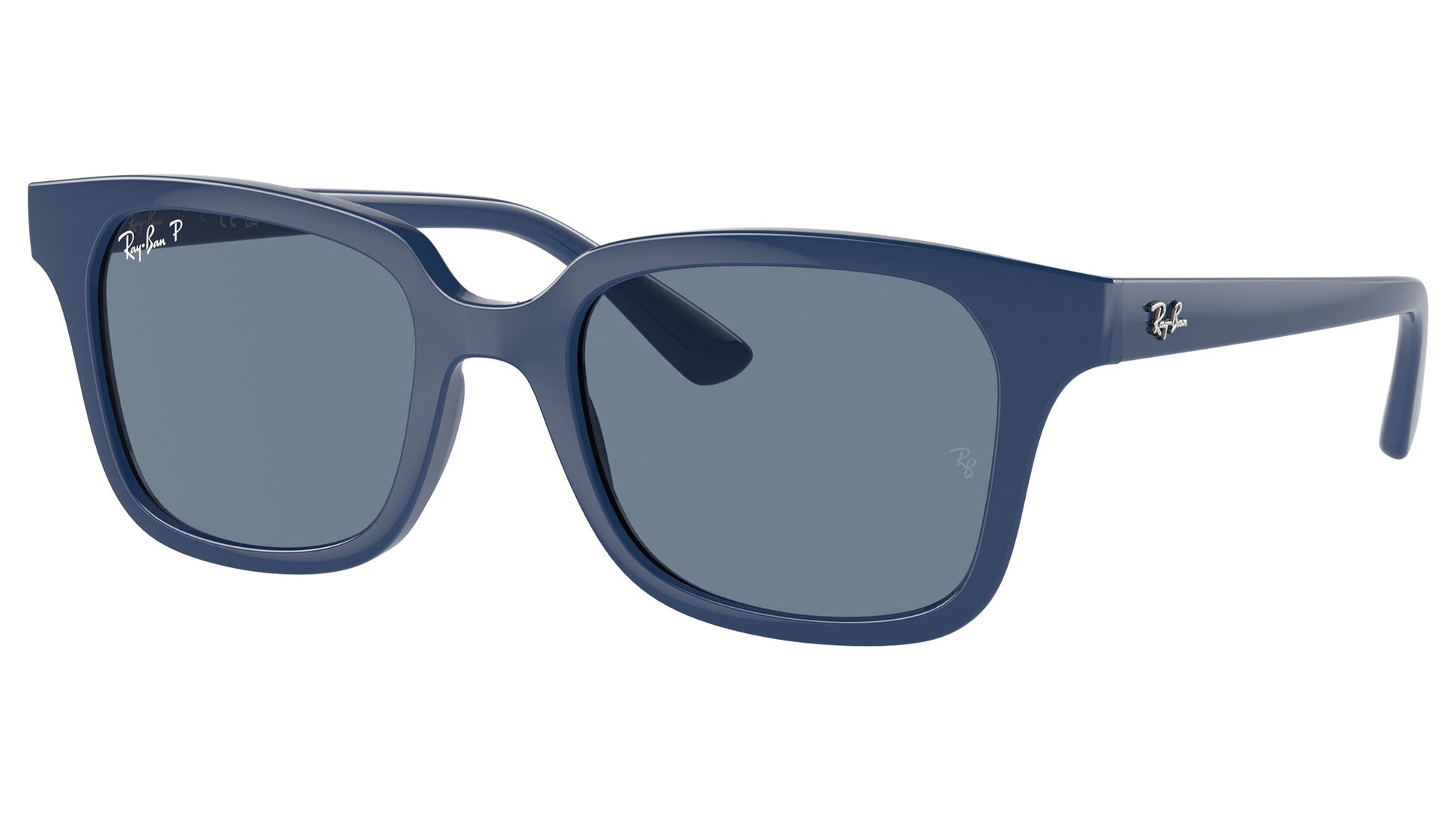 Ray-Ban sunglasses model RJ9071S color code 71612V featuring blue full rim injection frame and polycarbonate dark blue lenses. Includes genuine case. Authorised Ray-Ban Reseller.