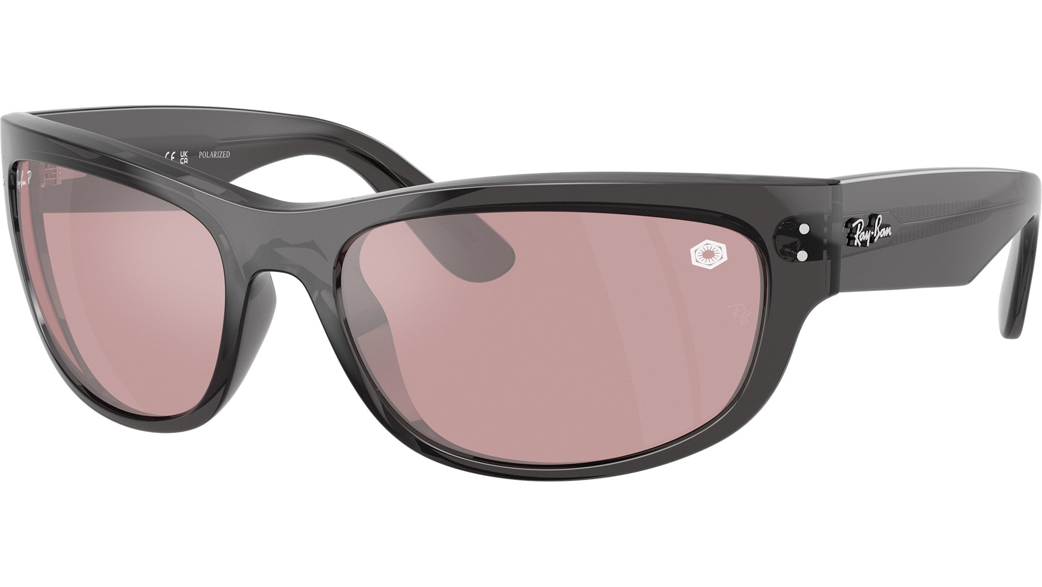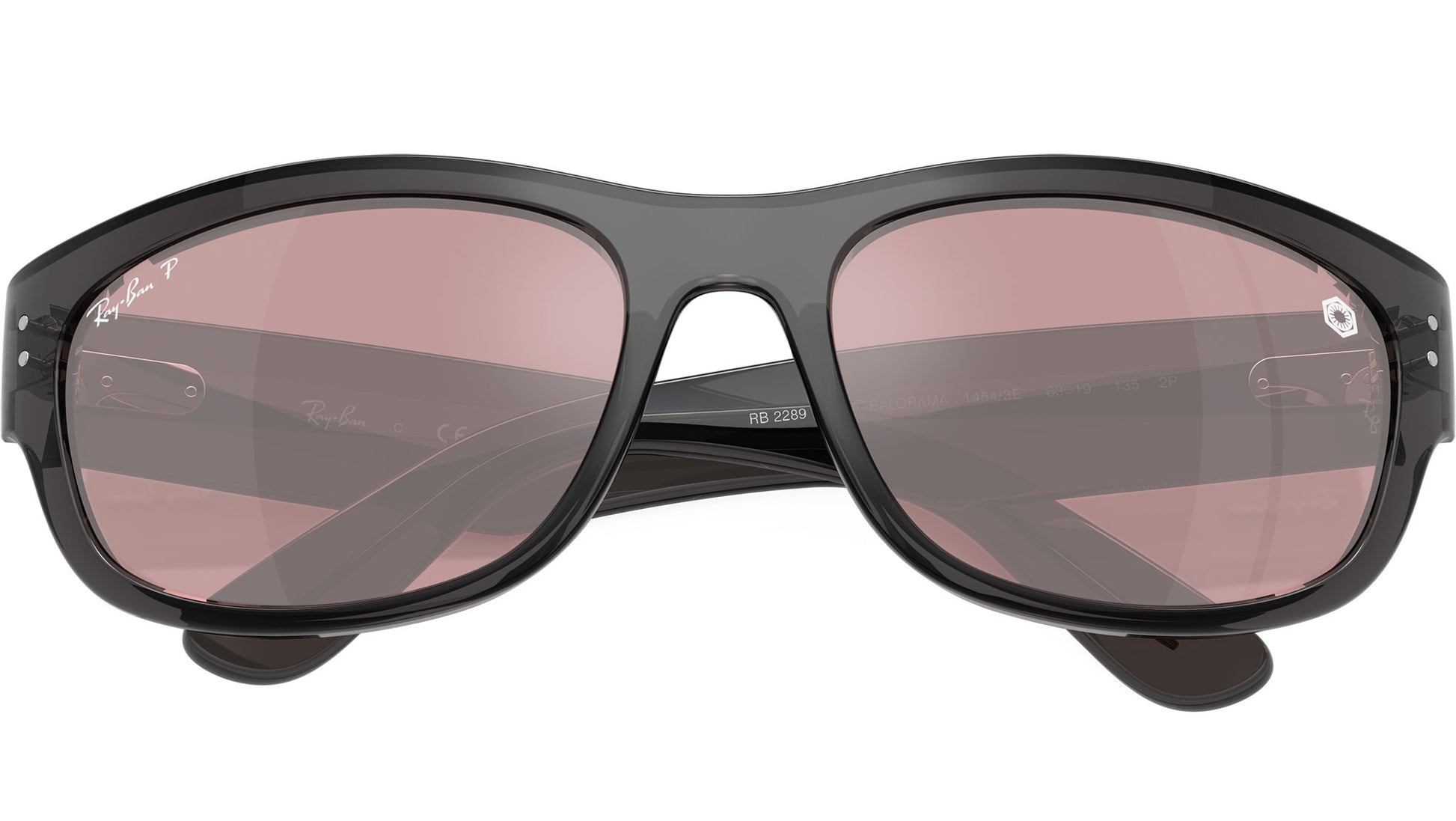 Ray-Ban Mega Balorama RB2289 14543E sunglasses for men and woman, featuring transparent black d-frame propionate frame and polar pink glass lenses. High bridge fit. Brand line: Evolution. Style code: 0RB2289. Color code: 14543E. Authorized Ray-Ban online reseller. Your glasses will include the original case and accessories and are covered by a 12-month global warranty.